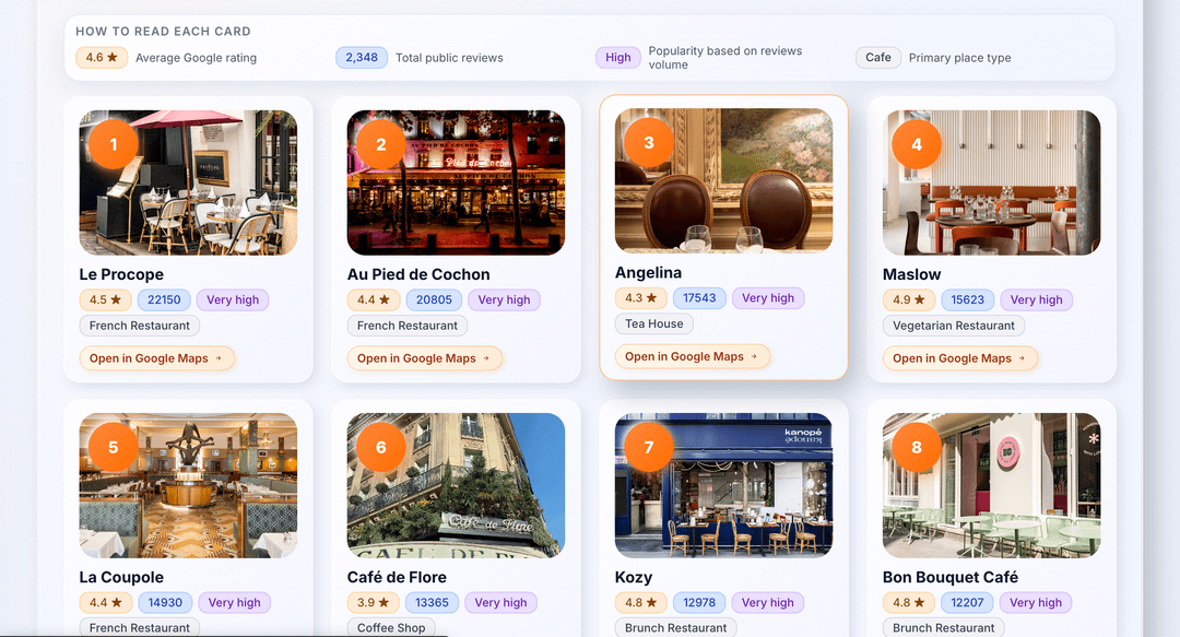 It feels like having a local guide everywhere in the world — but powered by real data instead of random opinions.