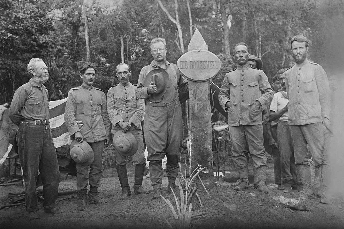 Theodore Roosevelt and Cândido Rondon stand at the newly christened “Rio Roosevelt” during their perilous expedition through the Amazon rainforest. 1914. [1200×800]