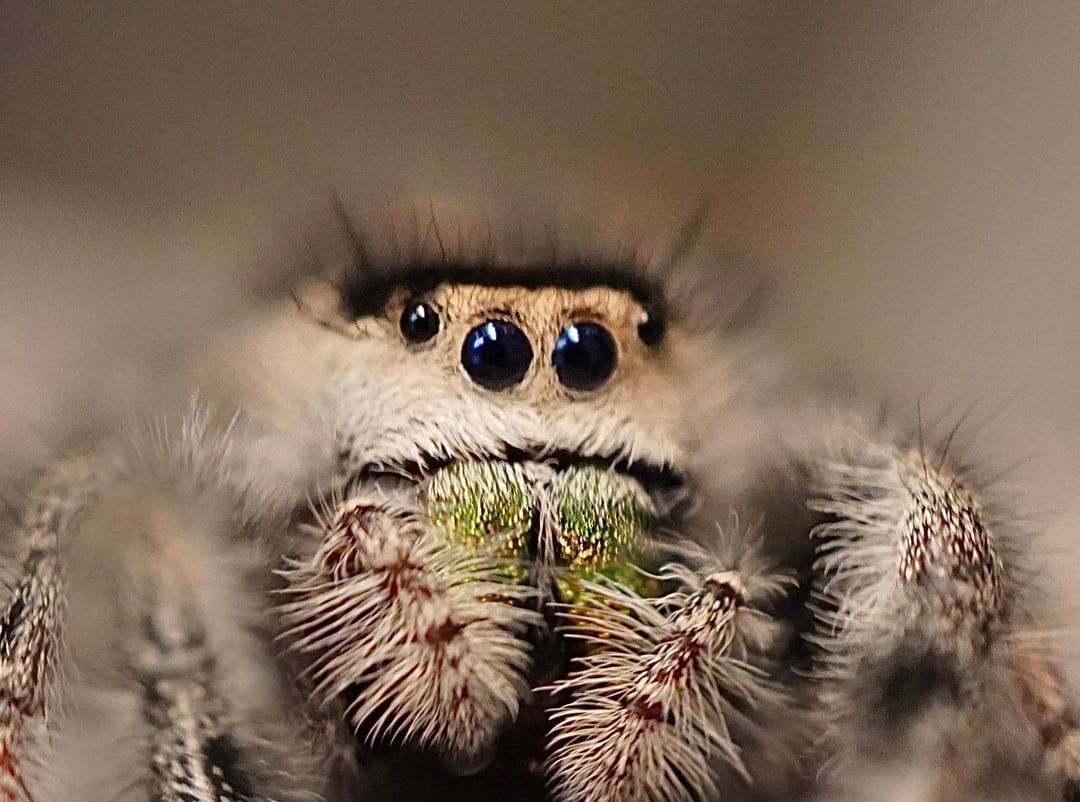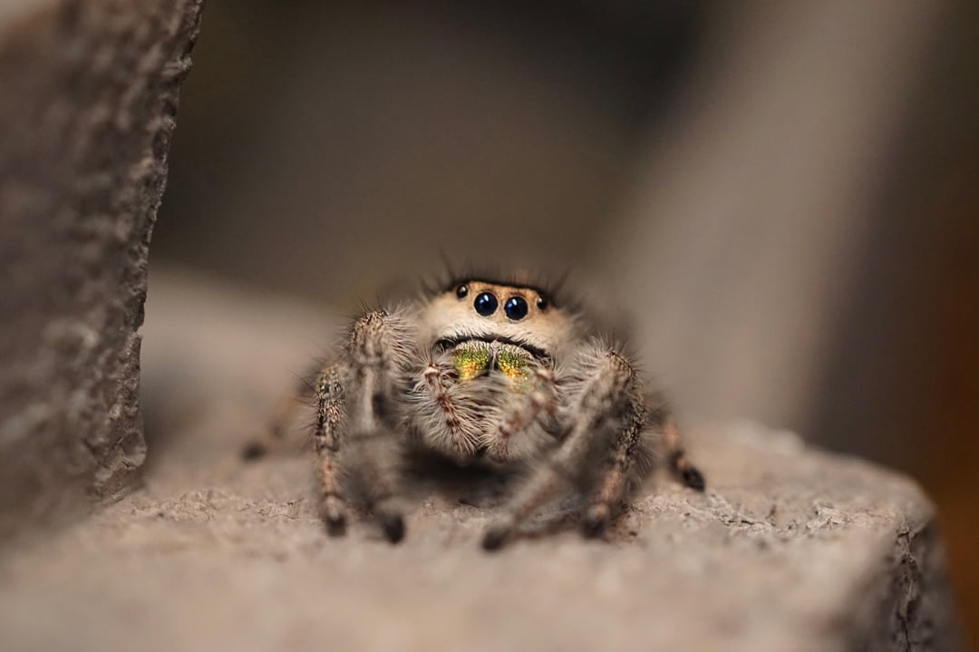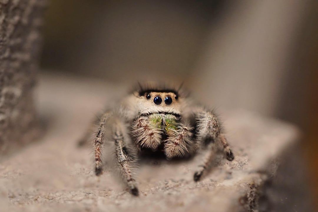 There are characteristics of jumping spiders that make them significantly less gut-churningly horrific than other spiders. Cute eyes, pretty colours, and more jumping and less scuttling are big contributing factors. I admire and respect spiders as apex hunters. I like that they dispose of flies and other pestilent insects, but they fill me with a deep irrational horror I find almost impossible to express.
