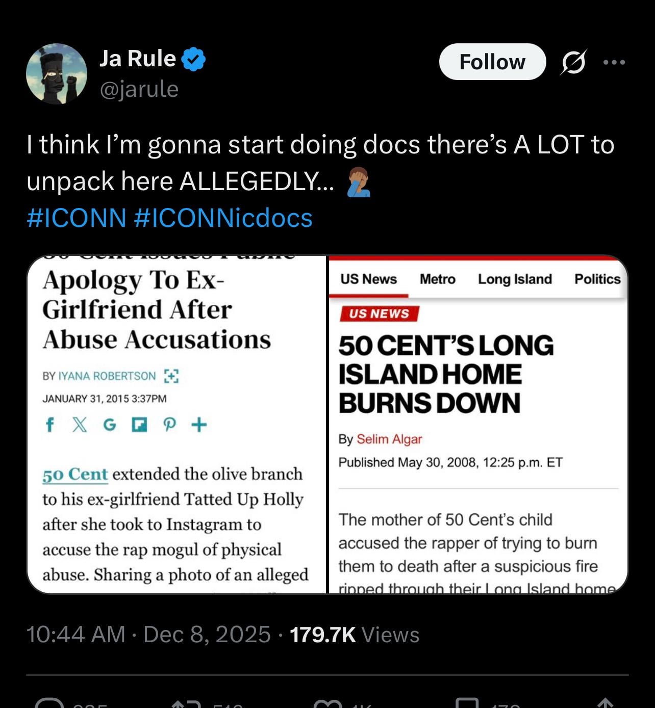 This is some of the weirdest and lamest stuff I have ever seen. 50 did a whole documentary just to troll Sean Combs, and now Ja is inserting himself. It’s just crazy to me that they do not care about the victims. Ja has a wife and newborn daughter at home, and 50 did an entire documentary on this whole thing and came out smiling in interviews because he gets to troll Sean. This isn’t funny, it’s just sad and shows no empathy.