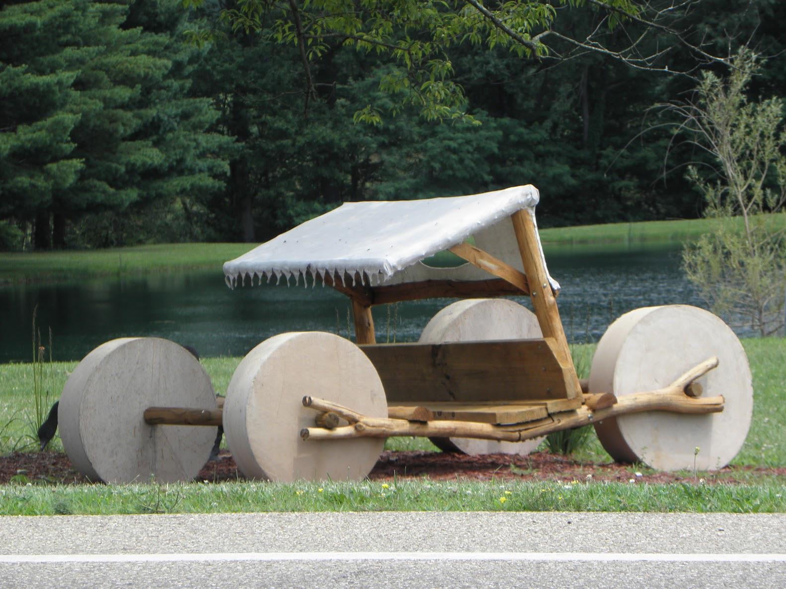Stone wheels, wooden frame, tarp roof. Honestly better than some cars I’ve owned.. this was on a back road in Ohio by HistoricalPermit6959