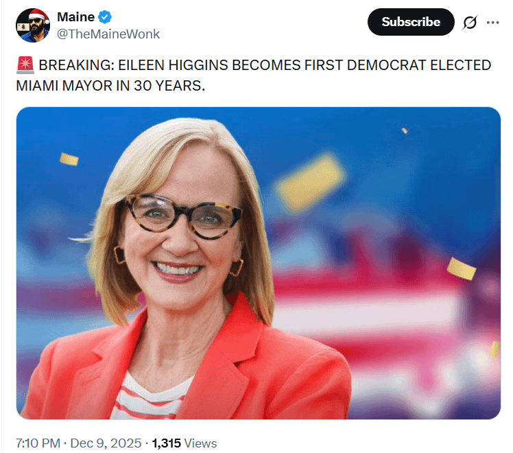Flankdiesel on December 10, 2025 1:04 am I honestly would have thought Miami would be a blue city not 30 years of red