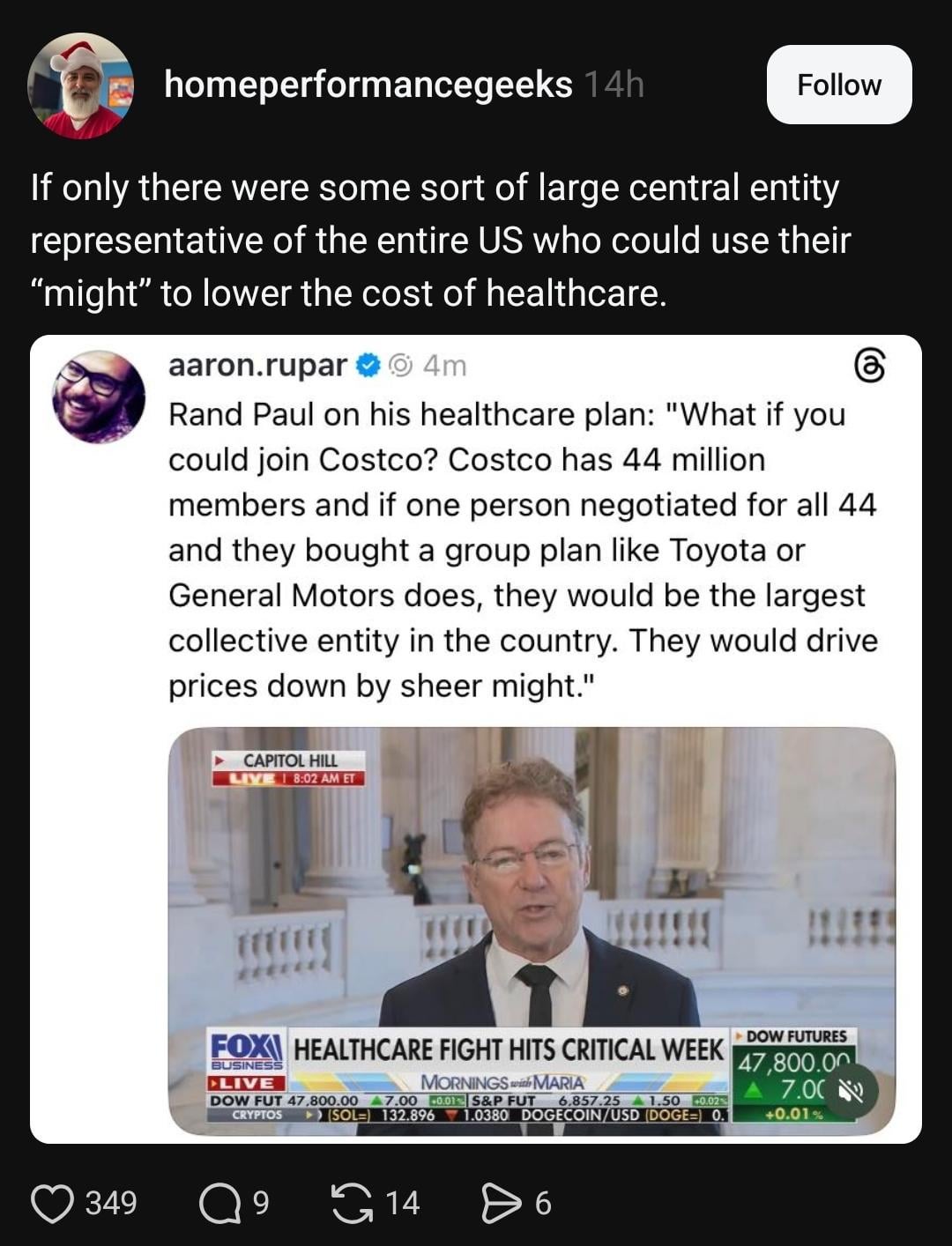 So the Republican healthcare plan is “what if Costco sold insurance?” Thats actually less than a concept of a plan.