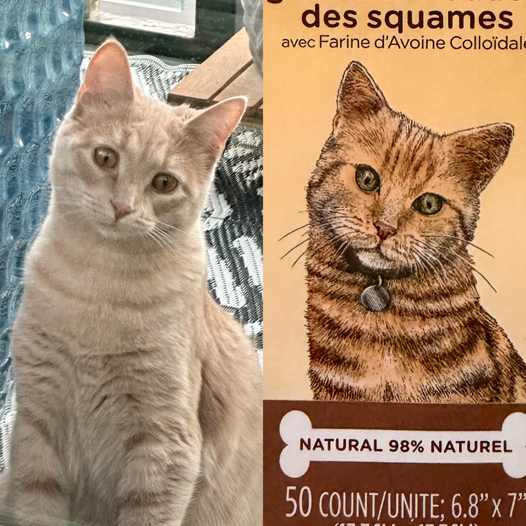I know it’s just a coincidence and many cats look alike, but her eyes were just doing this strange thing that I’d never seen her do before. When I saw this package I was like “I’ve seen that face before” and had to scroll back to my pics from 2023 to find my cat making the same face lol