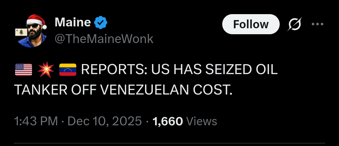 Under what legal basis is the US seizing a Venezuelan oil tanker off of Venezuelan coast? This is insane!