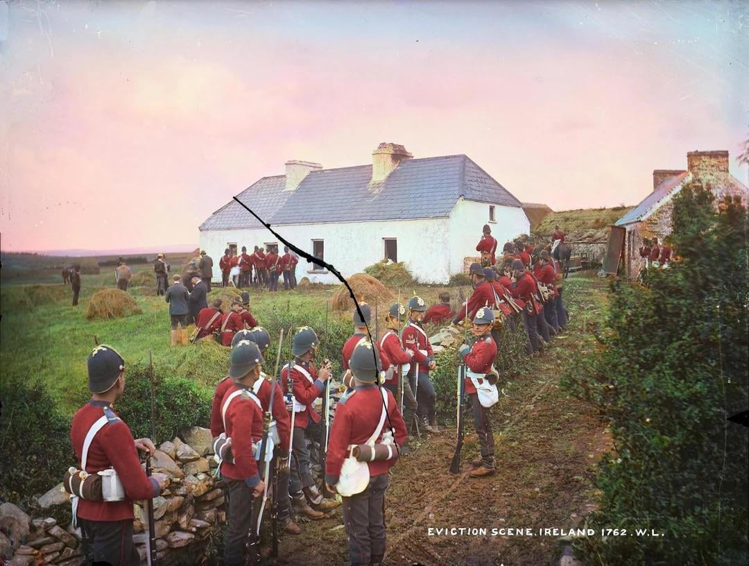 Its fake picture. The Irish lived in the hovel on the right. The whitewashed building was the pig sty.