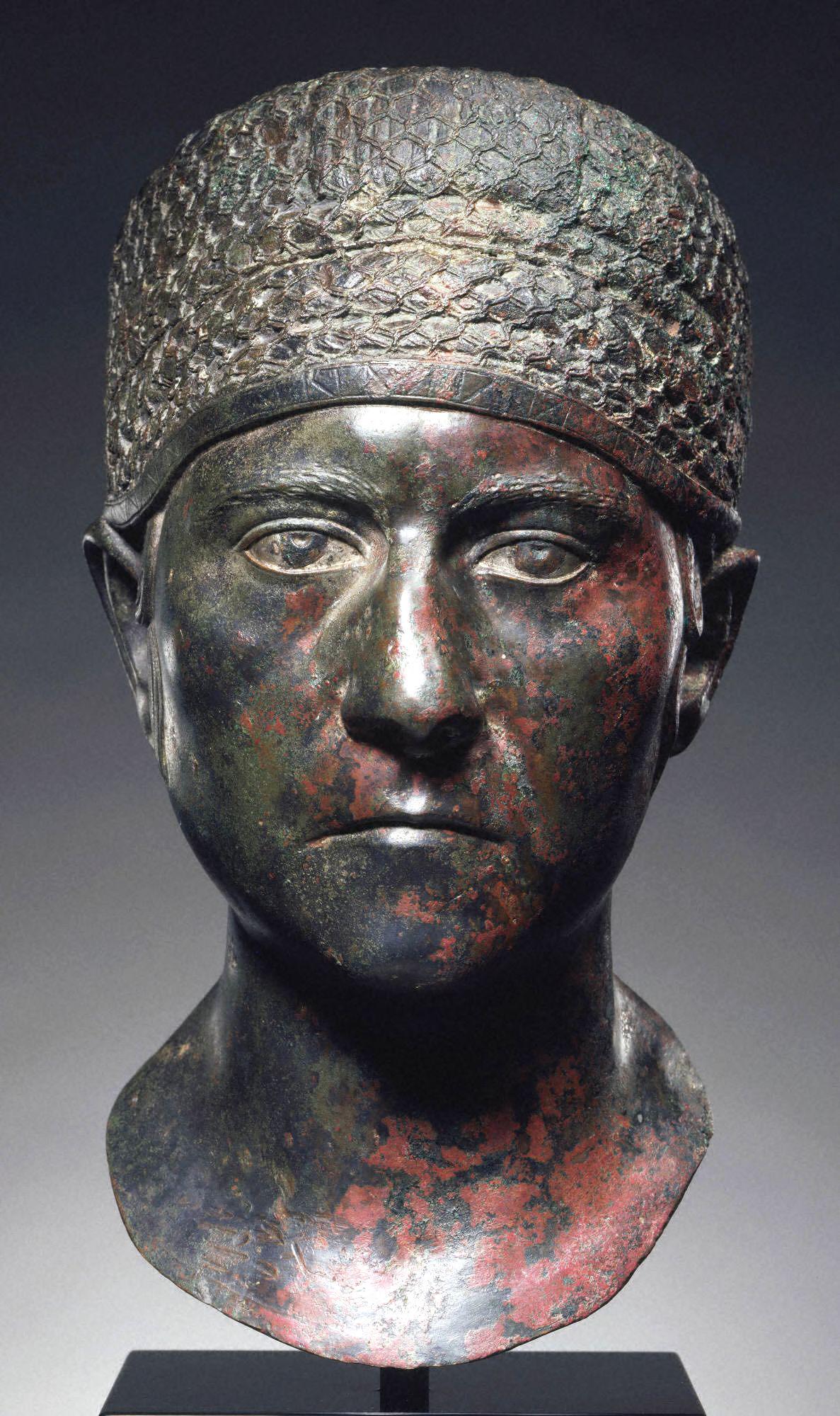 Portrait head of an older woman with hairnet. Roman, ca. 98-117 AD [reign of Trajan], discovered in 1879 at Chiavenna near Lake Como. Bronze with silver inlay. Princeton University Art Museum collection [1187×2000]