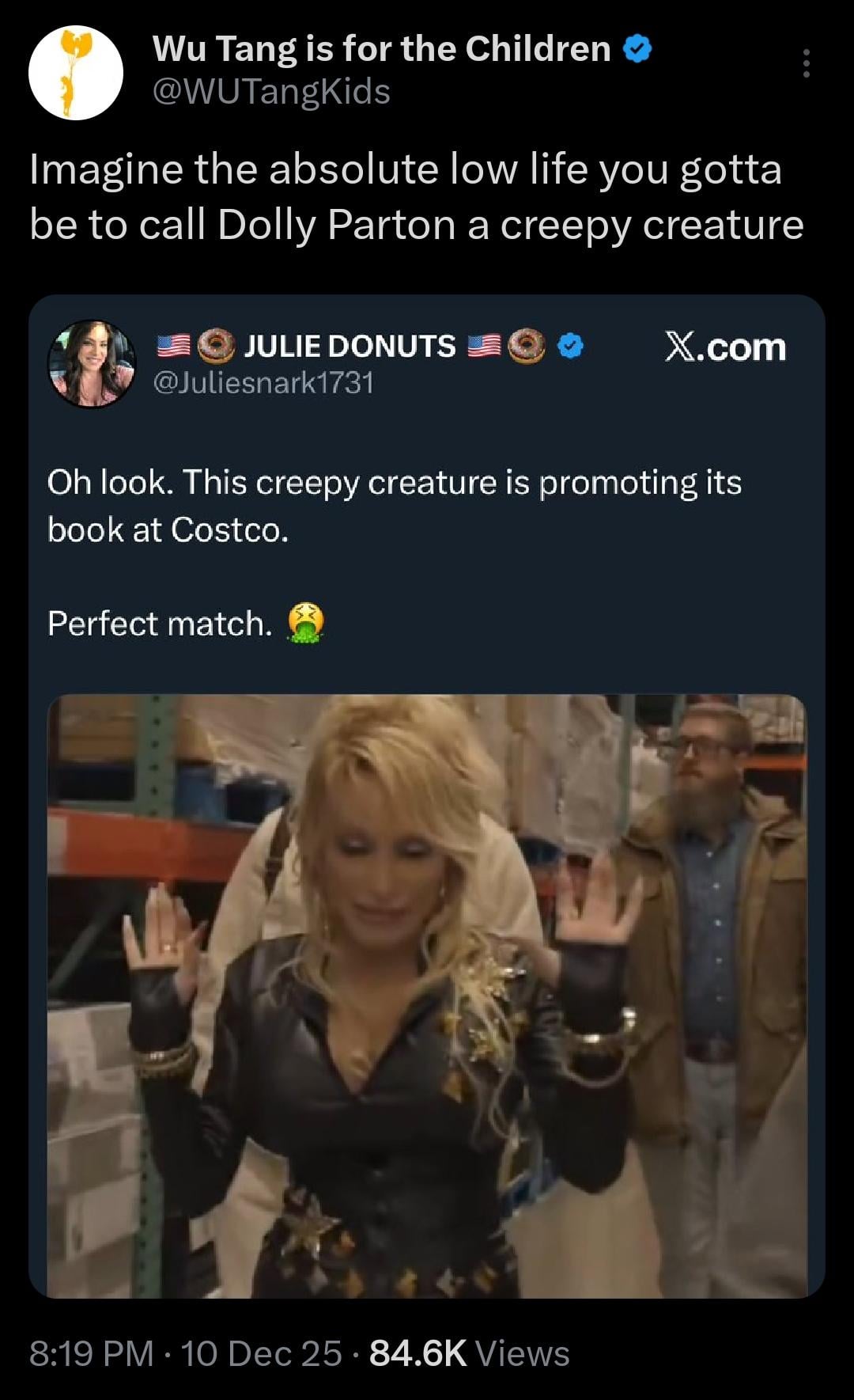 3. So MAGA hates Tom Hanks, Mr Rogers and now Dolly Parton while loving a bunch of rapists and pedophiles. Like how much evidence do you need that you’re dogshit people with dogshit ideas.