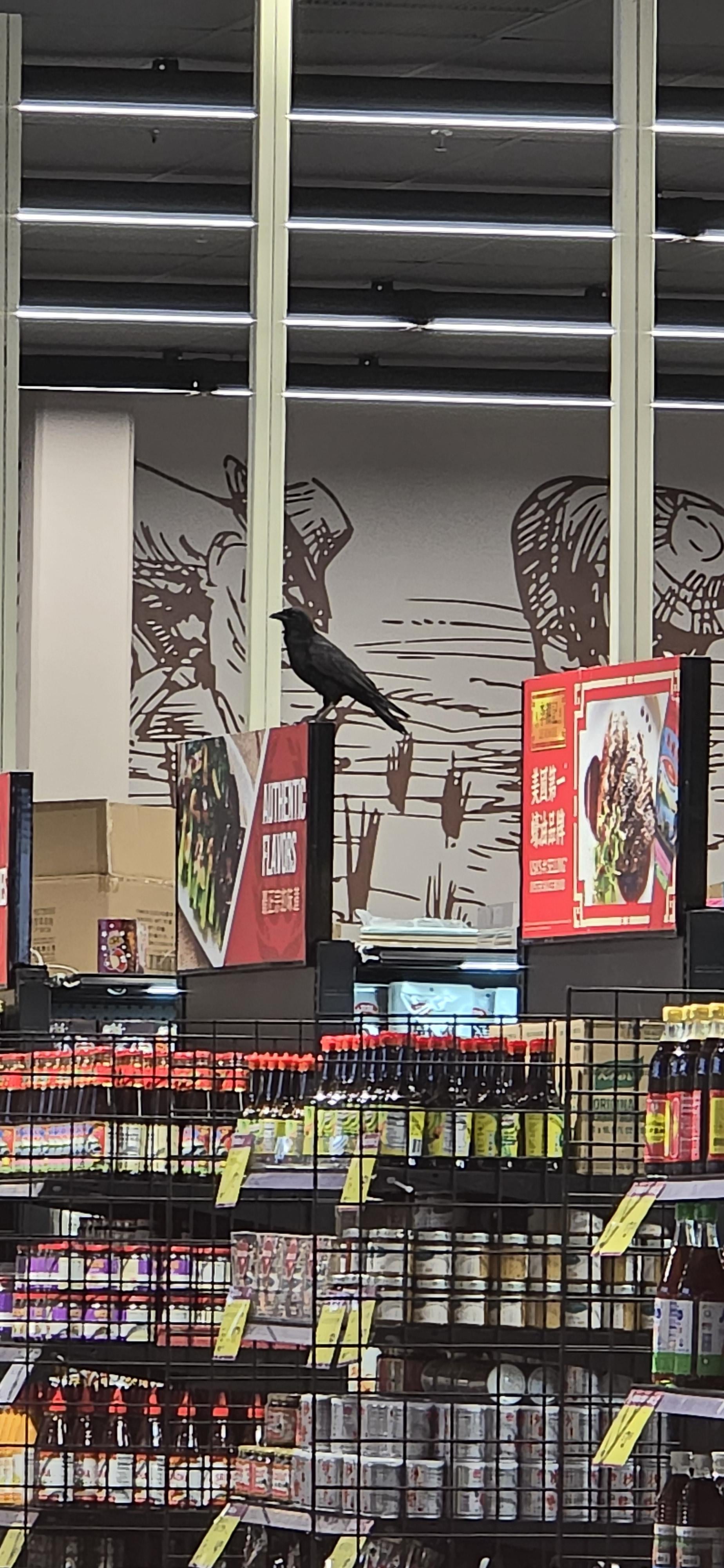 Trapped my eye…that crow has commandeered a grocery store.