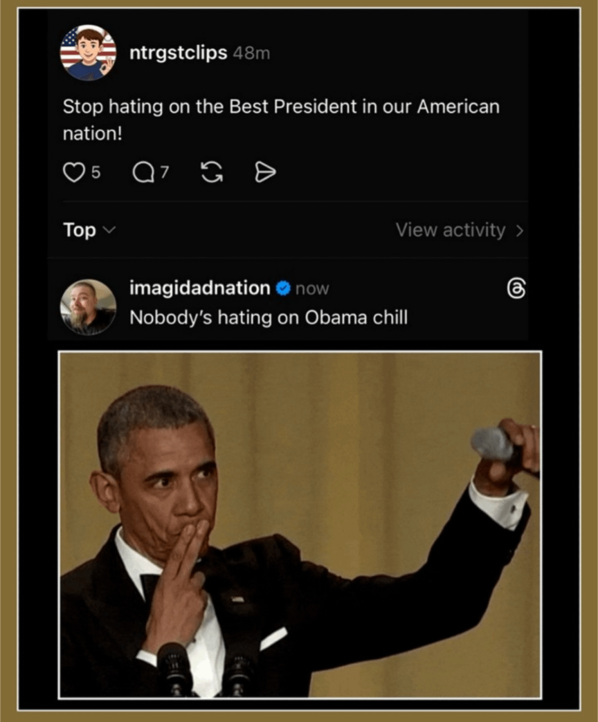 Babygeoffrey968 on December 12, 2025 7:20 am only reason to hate on obama is people admitting shit was better when he was president and resenting it