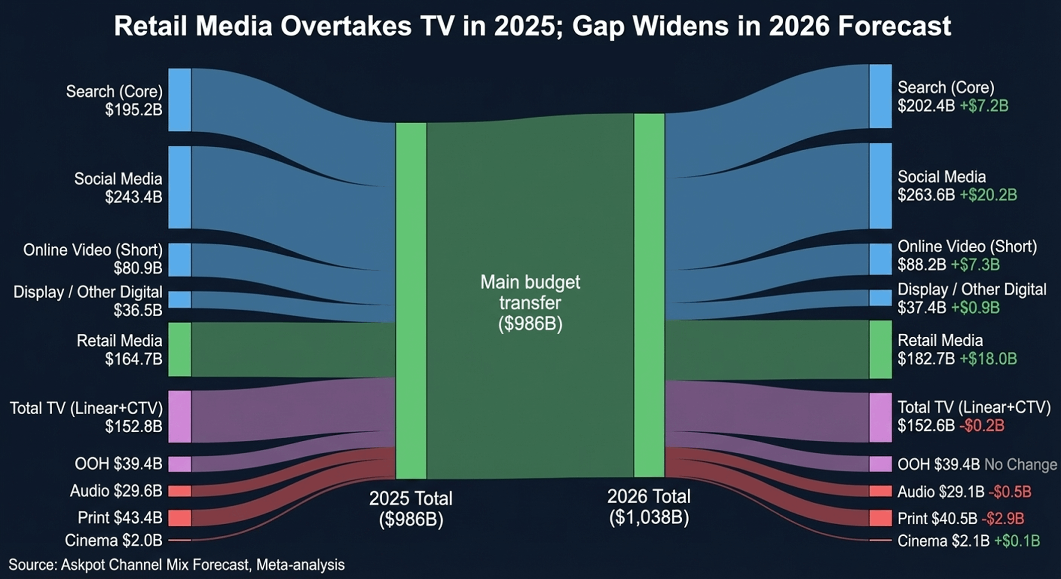 [OC] Global Ad Spend 2025–2026 – distribution by channel