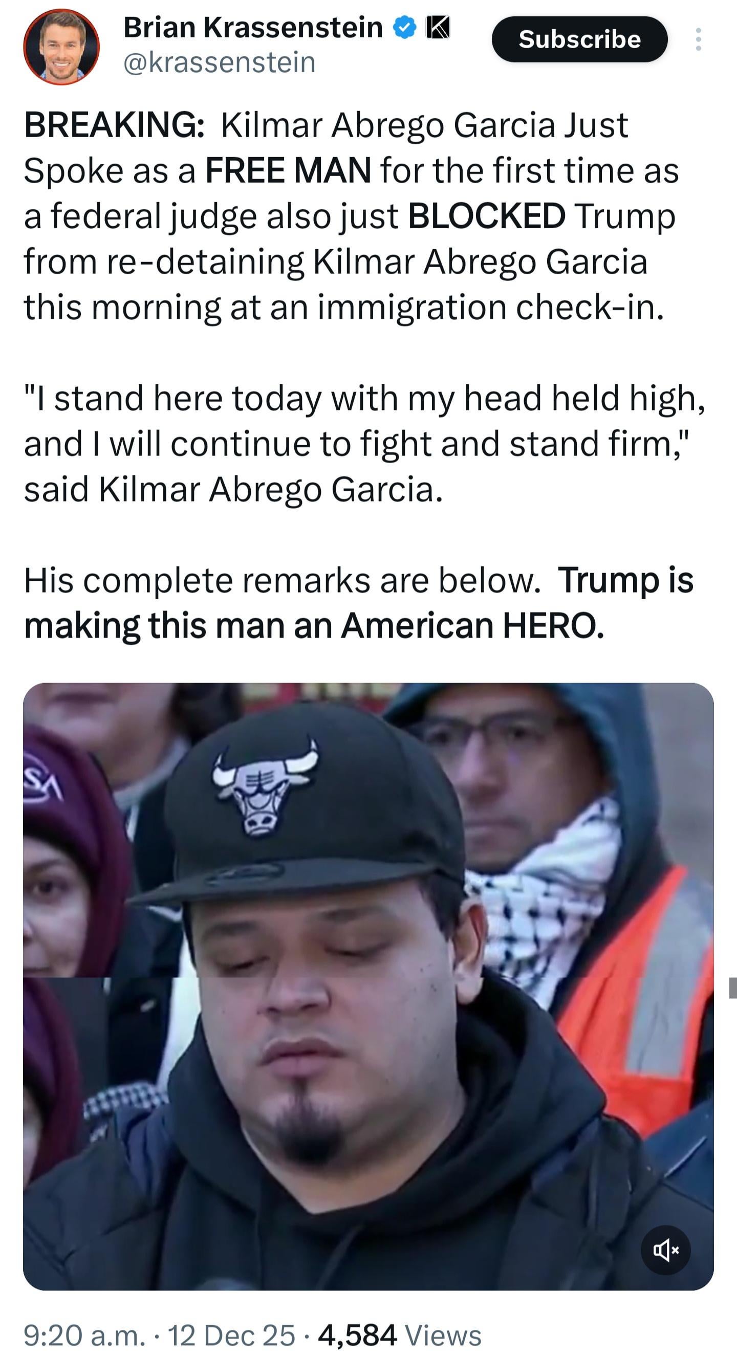 Kilmar Abrego Garcia was put through the ringer and he deserves justice! https://x.com/i/status/1999484596560286196 by yorocky89A