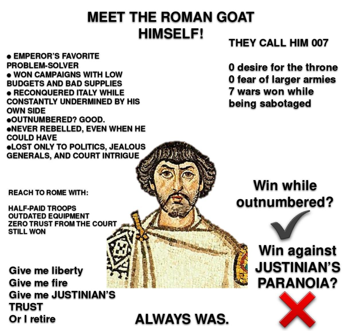 Belisarius the GOAT. could’ve recounquer Roman Syria if he haven’t fallen to court intrigue.