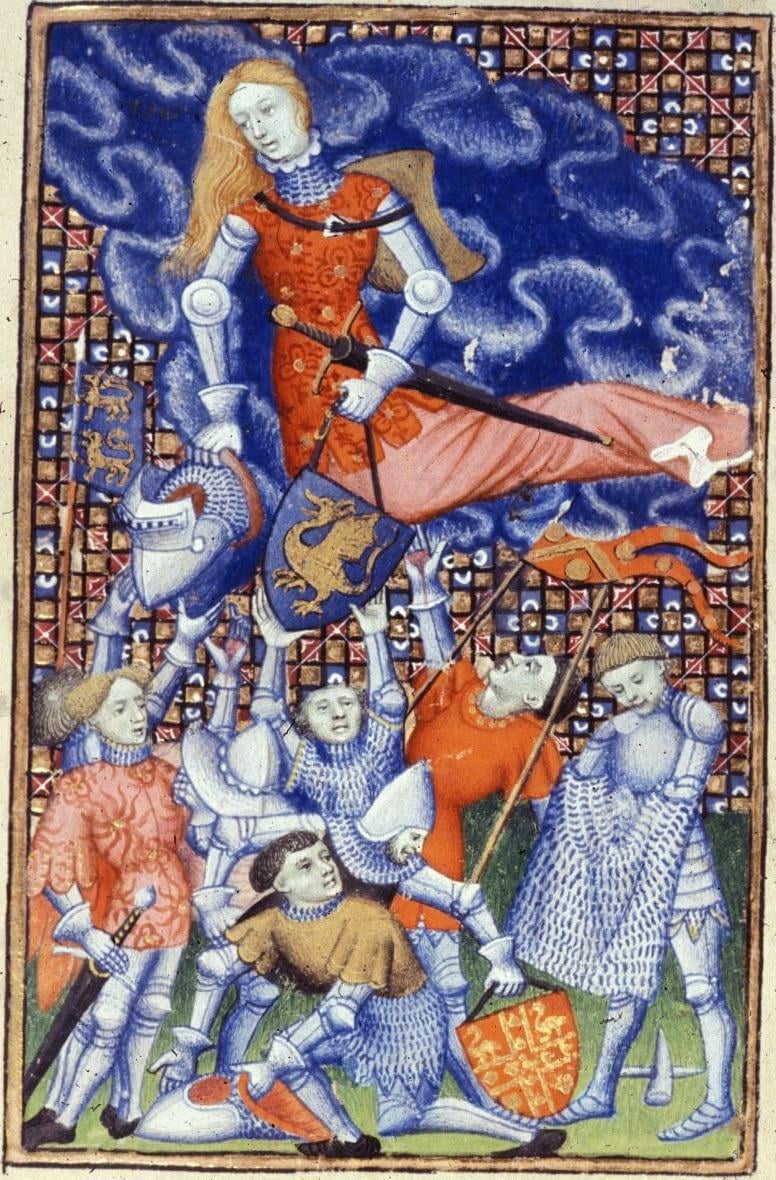 Minerva bestowing arms to her followers, from Christine de Pizan’s L’Epître Othea (1406) [776 x 1180] by PaTaY-oK-1429