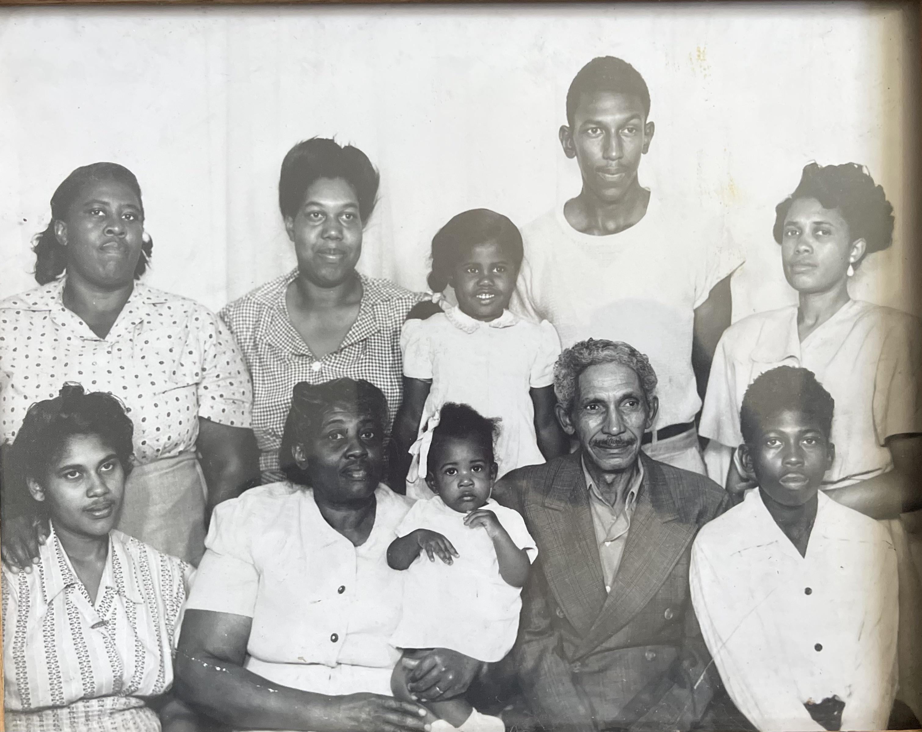 * The baby in the front is my grandmother. Seated behind the other little girl is my great-grandmother. The woman beside her, I believe, is my great-great-aunt. The woman holding my grandmother is also an aunt. The elderly gentleman is my great uncle’s father, and the boy seated next to him is my great uncle.*