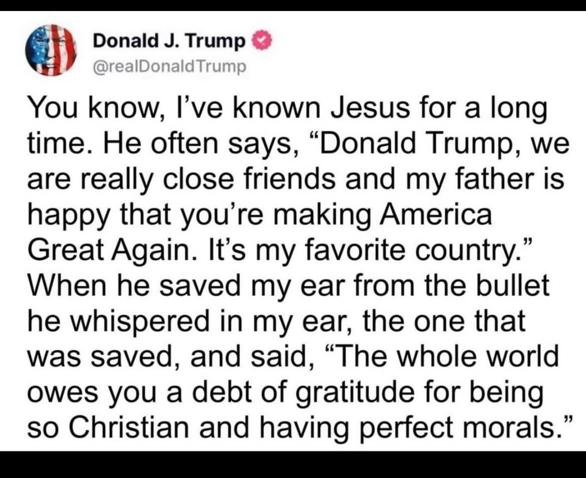 You know it’s fake because Jesus didn’t tell him that he deserves a Nobel Peace Prize