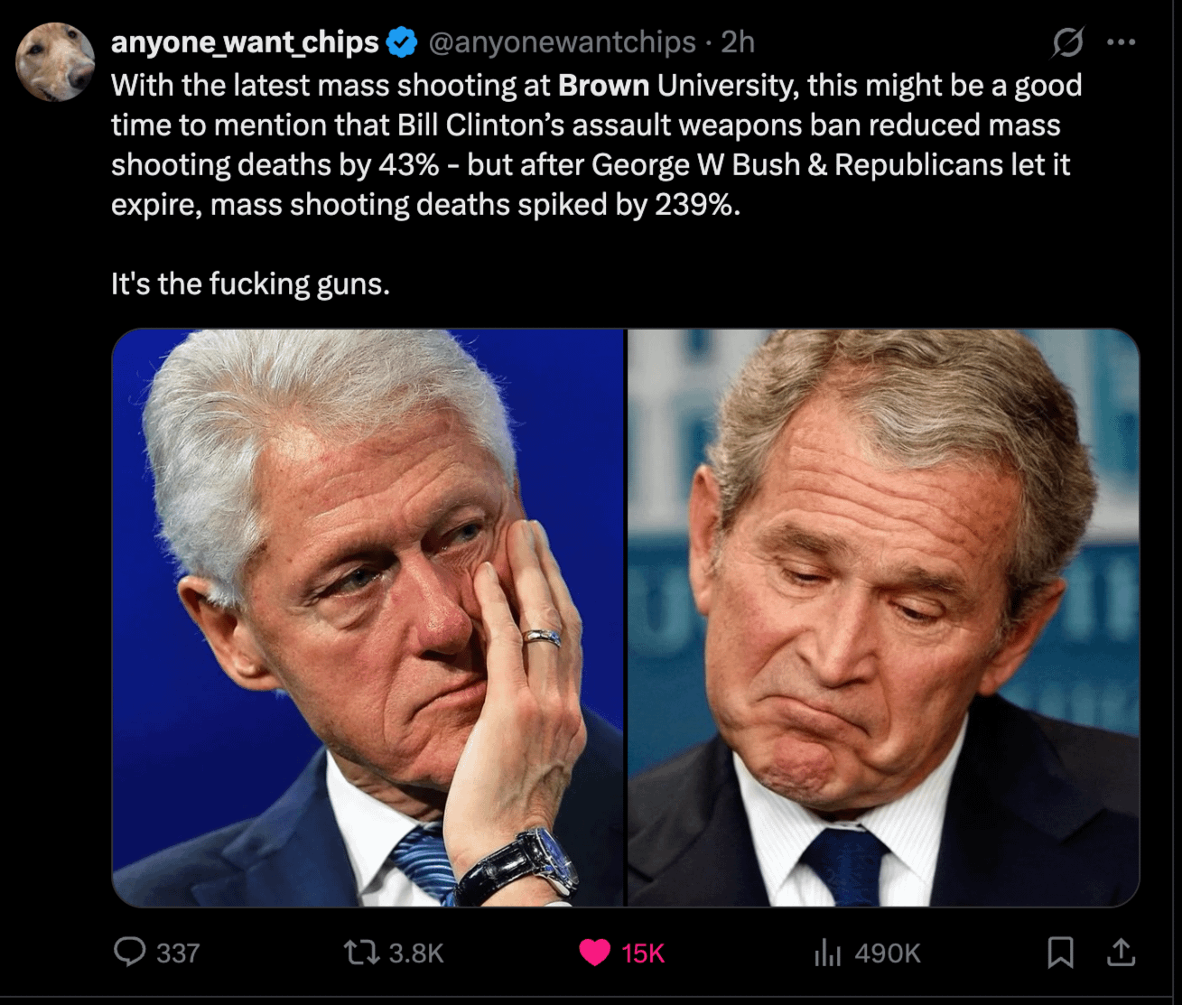 Mass murders were EXACTLY the same in number and fatalities during the crime bill (which was in effect for 10 years) versus the decade prior. Murders in general had been declining since the late 80’s. Plenty of data out there.