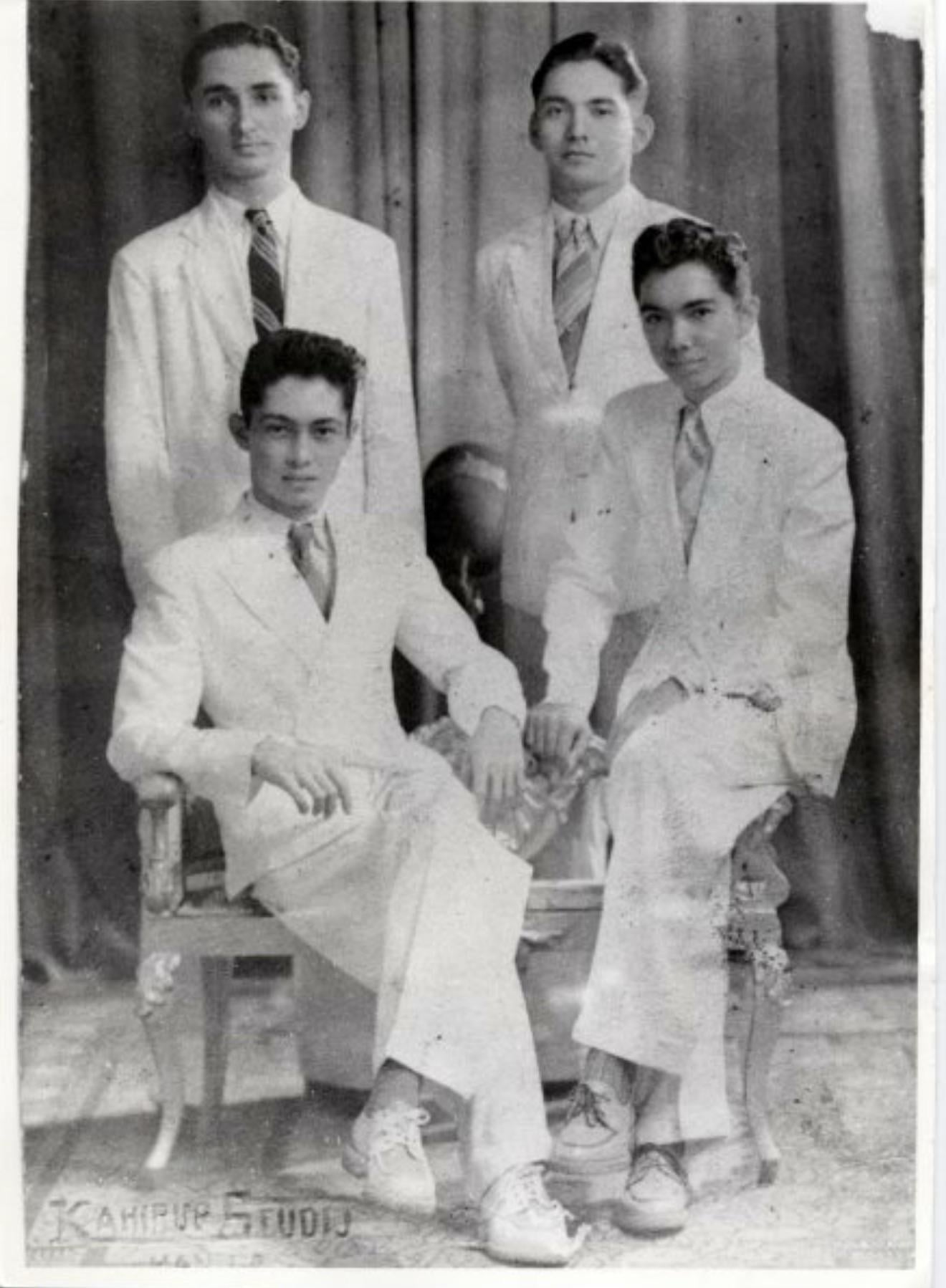 My maternal grandpa (half Irish and half Japanese, top left, black plaid tie ) and his 3 brothers). 1941. His mother’s family perished in Hiroshima and he was in a concentration camp during the war. by Equivalent-Humor8454