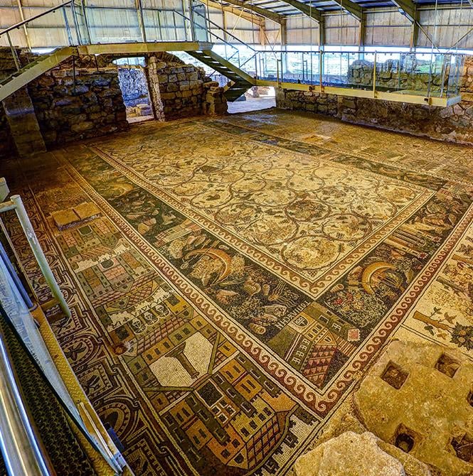 This Byzantine mosaic floor, at the Church of St. Stephen, is the largest one in Jordan. It’s dated to 785 CE, and has a series of panels depicting the most important cities of the region, which includes: Jerusalem, Nablus, Sebastia, Caesarea, Lydda, Bayt Jibrin, Ascalon and Gaza [665×670]