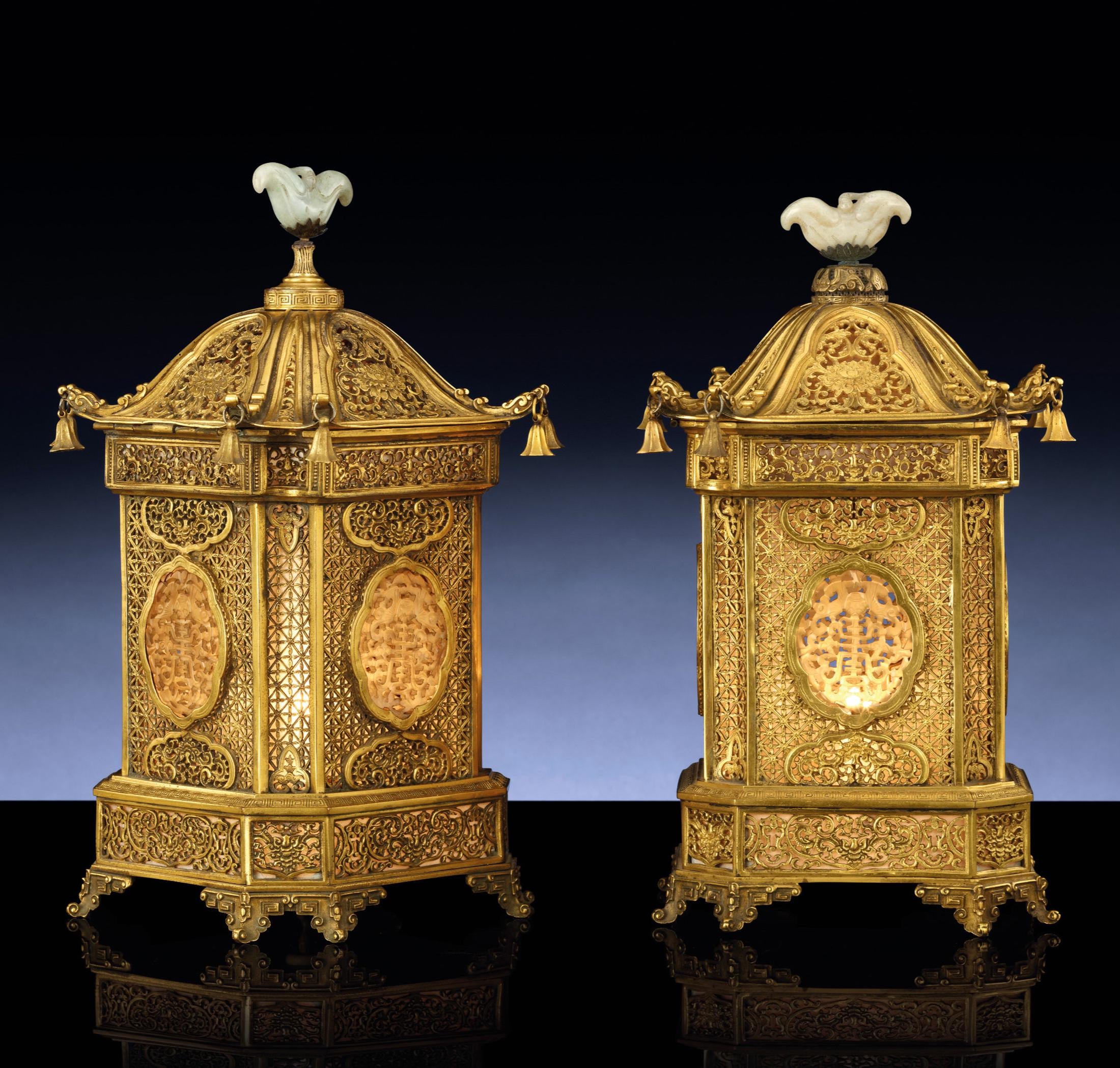 Two gilded lanterns with carved jade panels. China, Qing dynasty, 18th century [2200×2099] by MunakataSennin