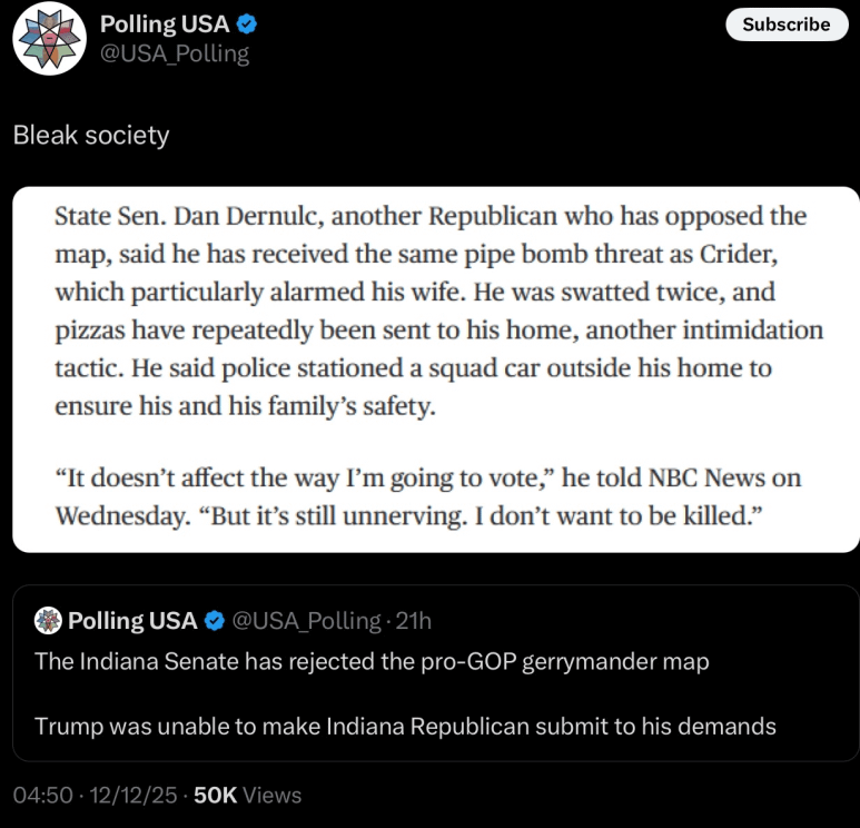 Given how red Indiana already is, the new maps could actually backfire on Republicans. This isn’t a newfound respect for democracy, it’s about clinging to the most reliable way to keep power.