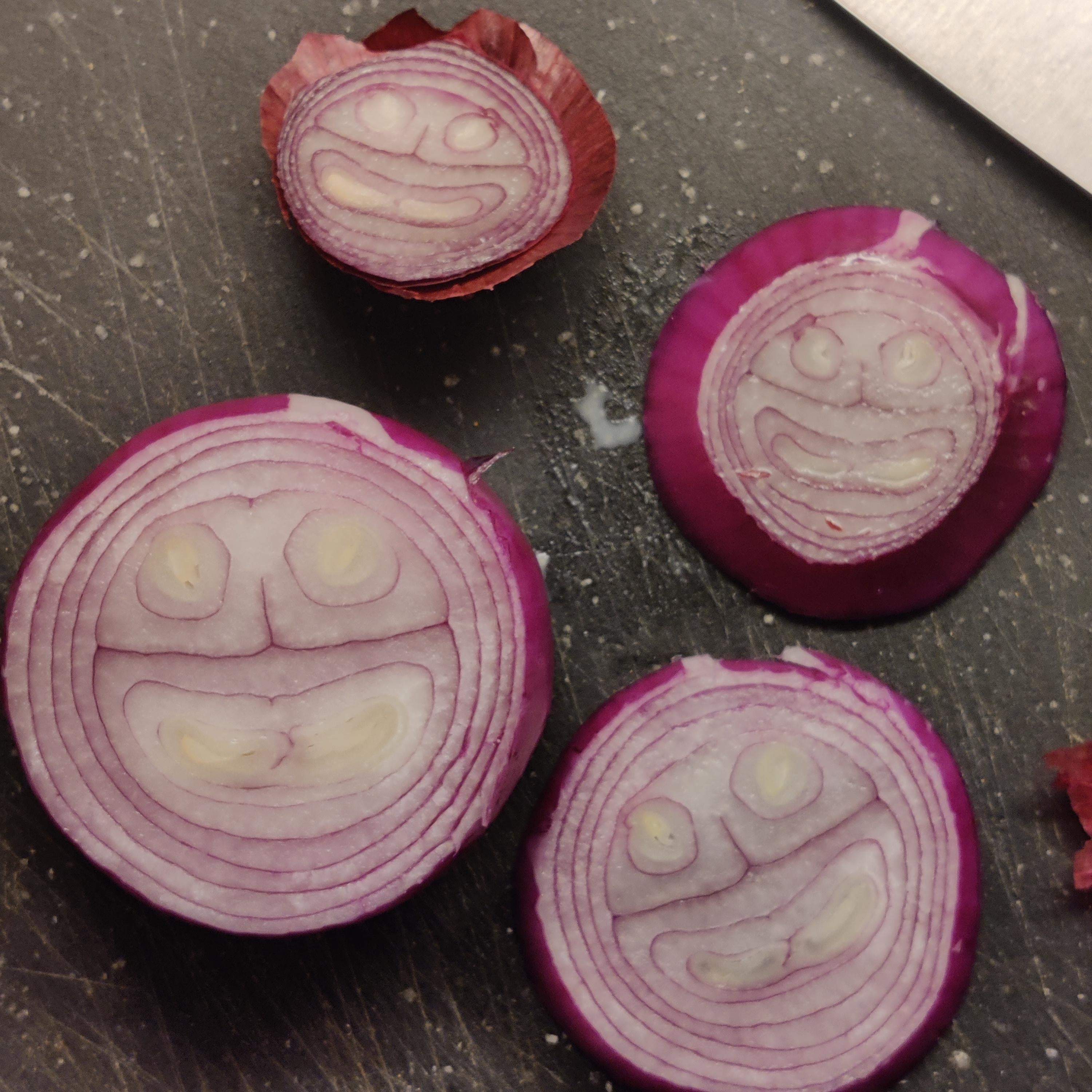 The red onion I cut had a smile going through it.