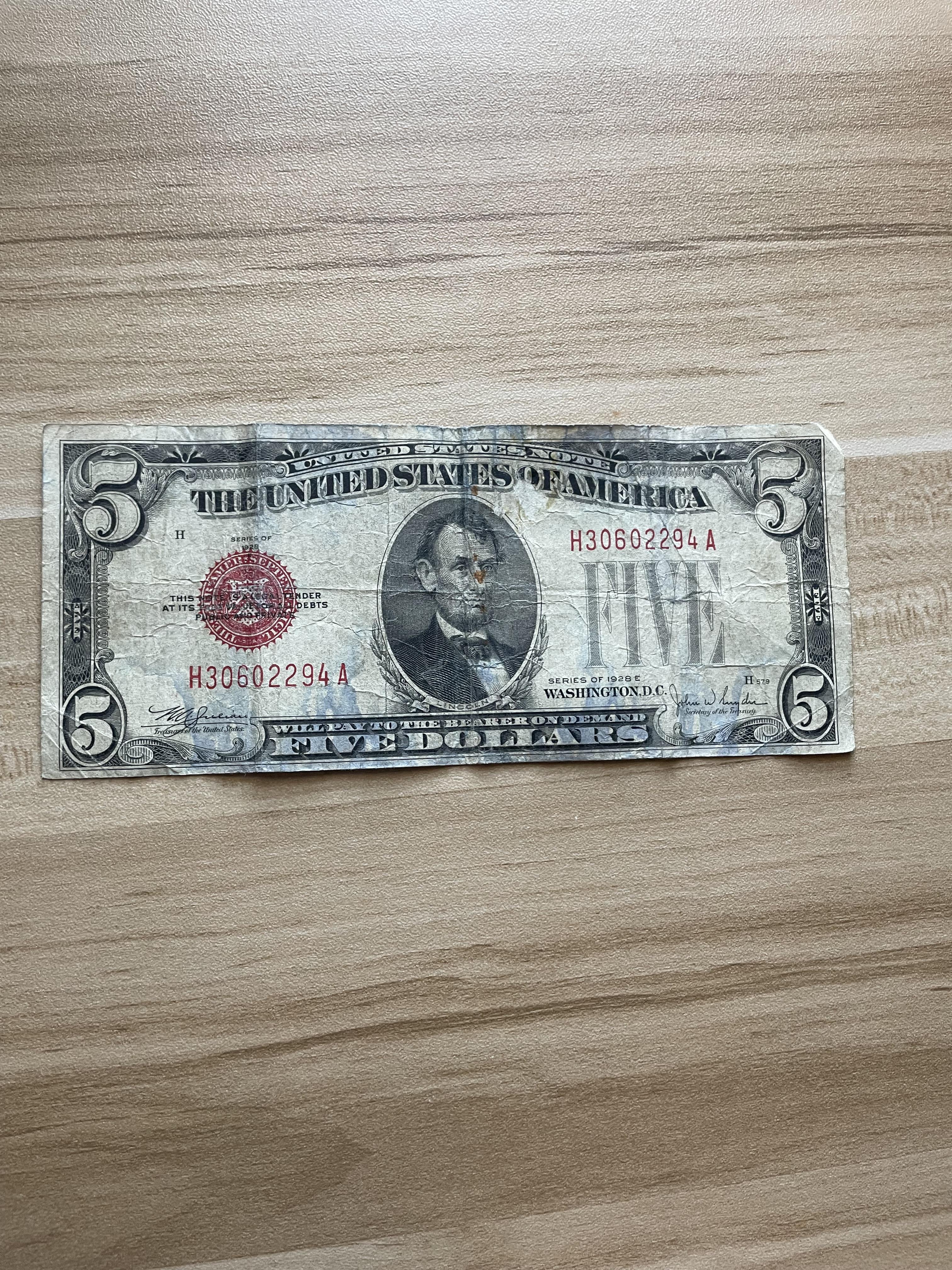 Legal tender note? Def worth more than 5 bones but value going to be diminished based off quality. Very cool though. I’ve got a stack of silver cert 5 dollar bills from my GPA somewheres in my safe. I’ve got 8 or 9 of them as he would give me one for a bday present, or a cool two dollar bill etc.