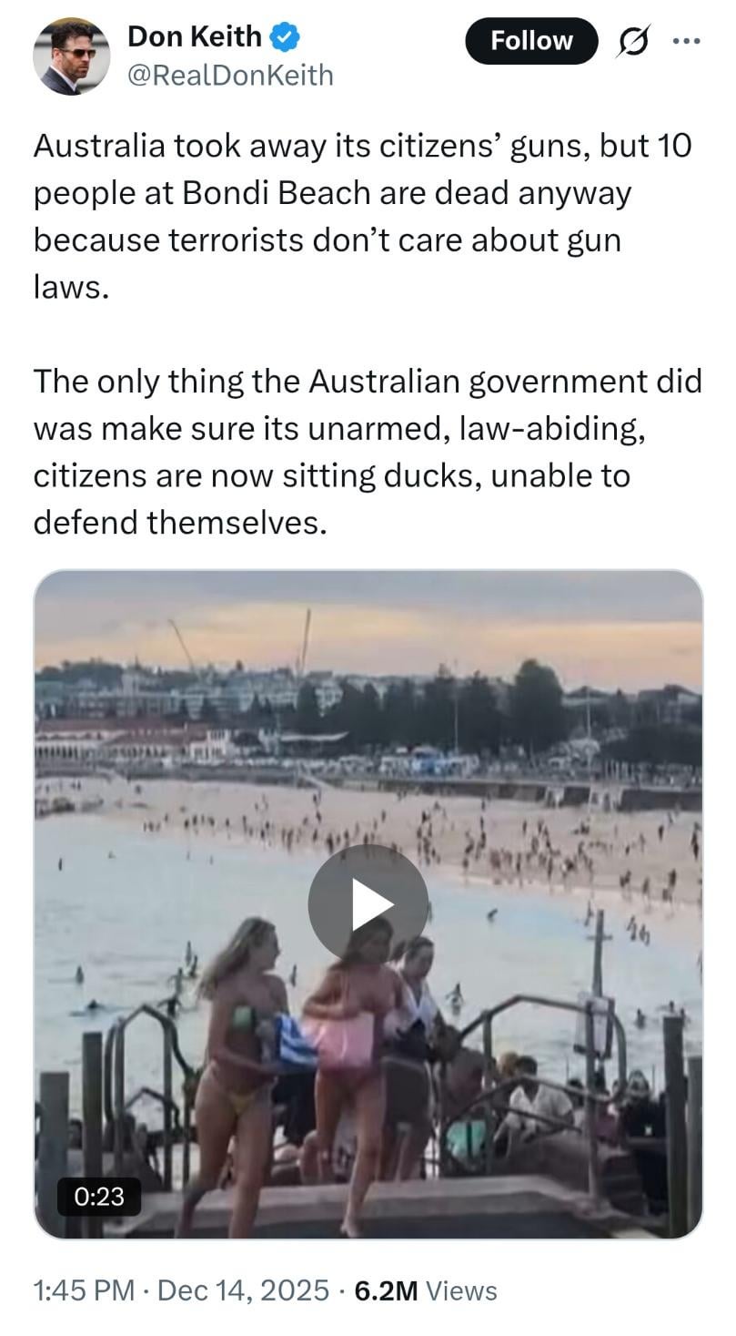 Australian here (who works with firearms) DonKeith can go fuck himself. Our country became immeasurably safer after the gun amnesty post Port Arthur – there’s a reason this is the worst event in nearly 30 years.
