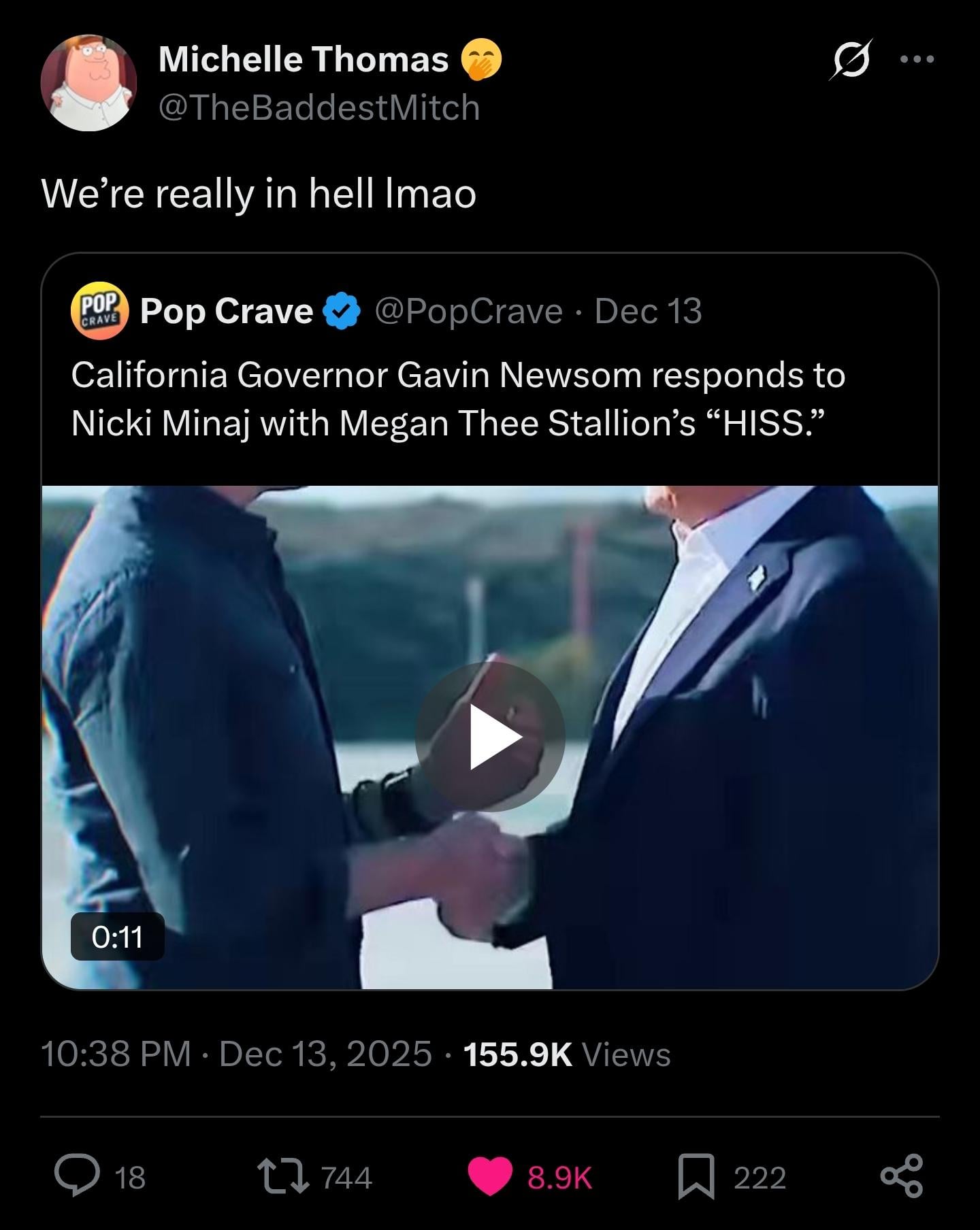 “Responds” lol, I’m out of the loop, why is Newsom beefin with Nicki?