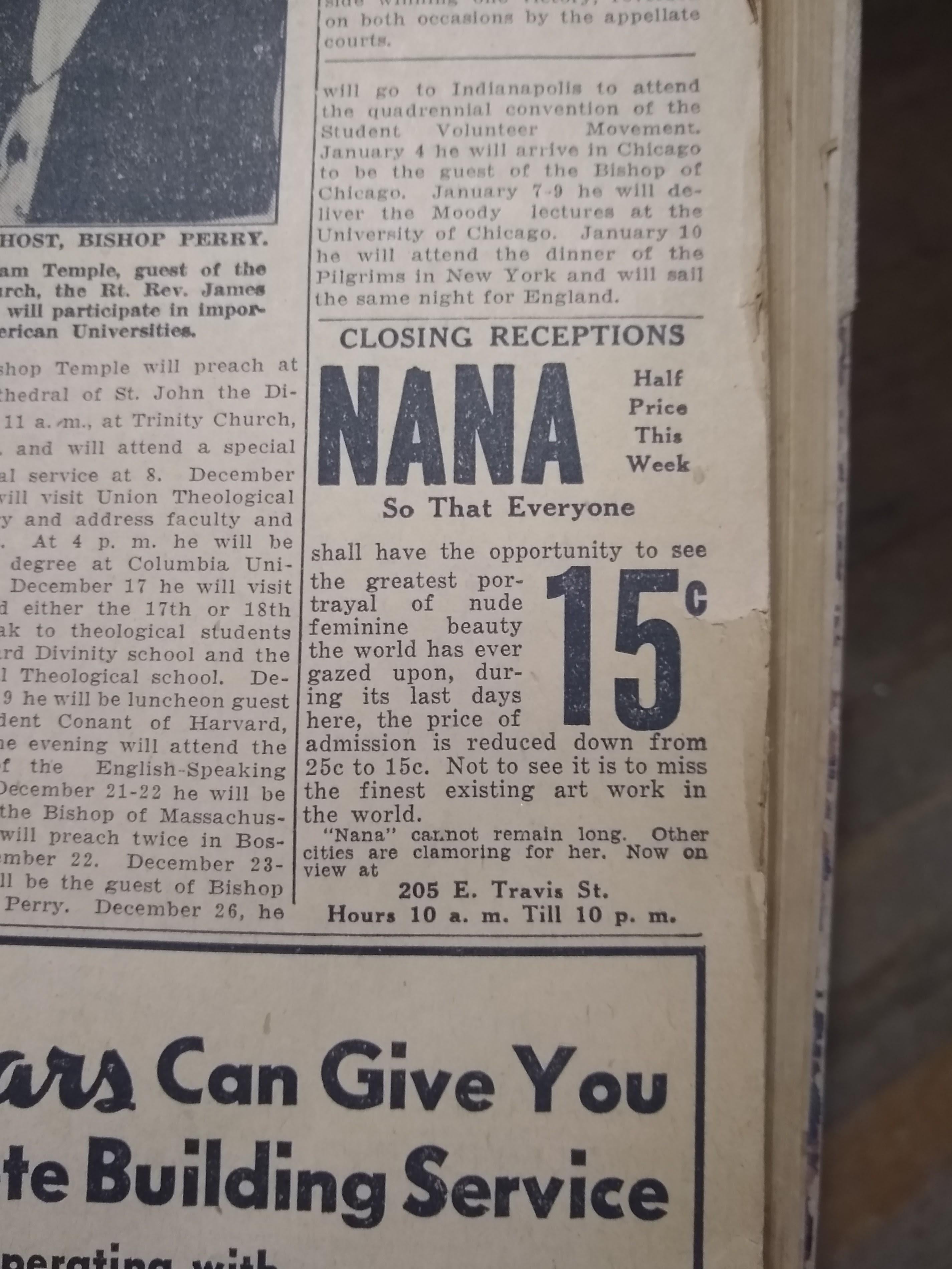 Nana (1881) by Marcel Suchorowsky was exhibited through out the United States and Europe from the 1890's through the 1930's before reappearing in the 1970s and being sold to Texas real estate developer Trammell Crow. Here is a short footnoted history of the painting and its exhibitions. The History of Russian Empire's Most Expensive Painting. A small black and white image of the painting is included in the history. (That small image is the only NSFW aspect of this post.)