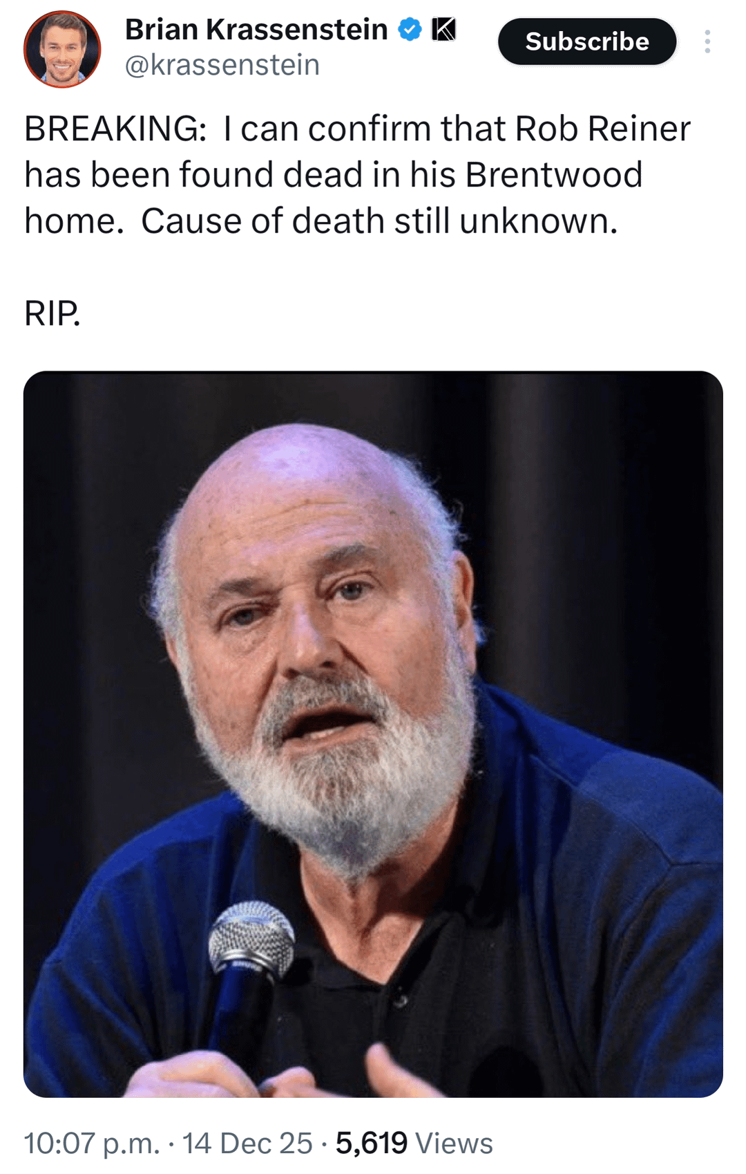 While it is very likely Rob Reiner that account in the screenshot is not a reliable source.