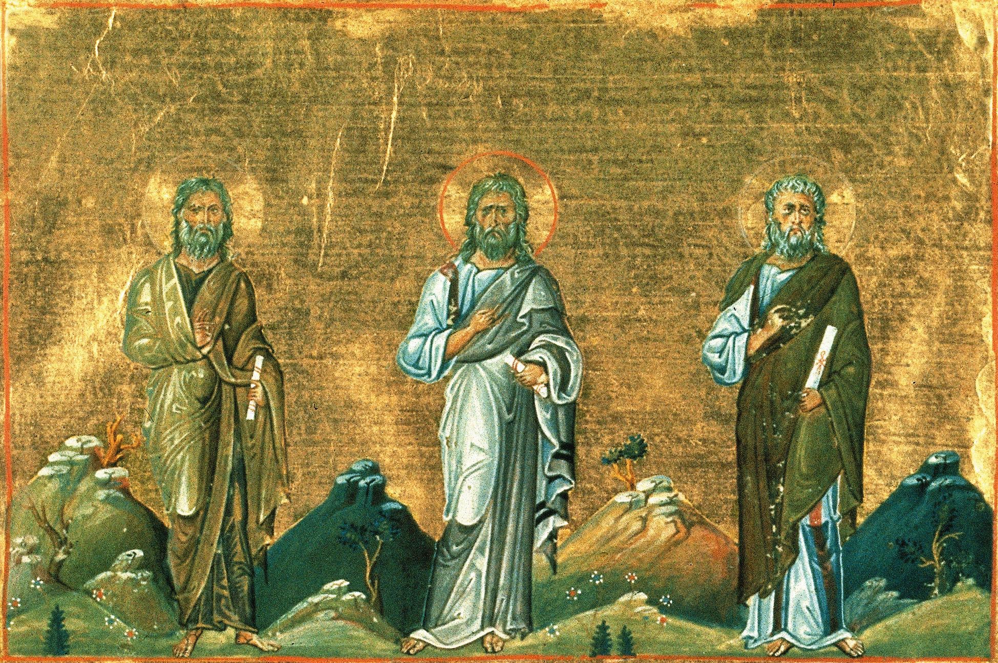 The Menologion of Basil II is an illuminated manuscript containing the lives of Saints, with more than 430 images of important examples of hagiography. It was compiled around 1000 AD for the Emperor himself, and serves as an important example of Roman art in the 11th century. In one of the many images inside the manuscript, the Three Holy Hierarchs are depicted in the artistic style of the Macedonian Renaissance, these being: Basil the Great of Caesarea, Gregory the Theologian of Nazianzus and John Chrysostom. The manuscript currently resides within the Vatican library.
