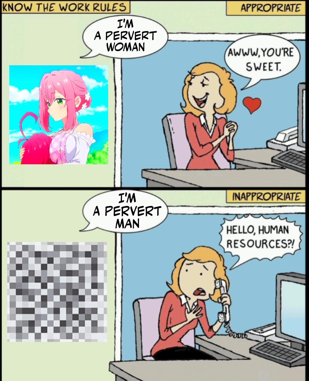 I hate both but one thing I realized about perverted woman in anime is that they 9/10 get away with the harassment with no punishment and some even take it very far to sexual abuse