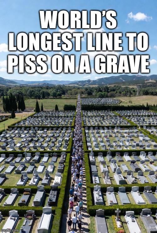 Oi dont piss on that grave before i dance on it dont want my dancing shoes piss covered.
