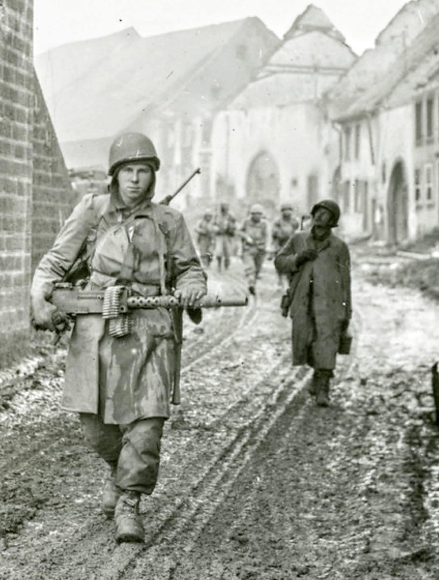 GIs advance beneath a railroad underpass east of Vœllerdingen as fighting continues in France, December 5, 1944. Original caption and photo from US Army Signal Corps. [1525×2015]