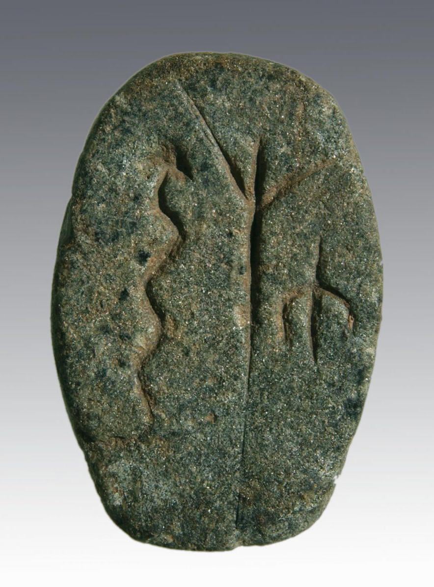 A 11,000-year-old small stone plaque, from Göbekli Tepe in Turkey, depicting from the left to the right: a snake moving upwards, a stylized human figure (?) with raised arms, and a bird [884×1196]