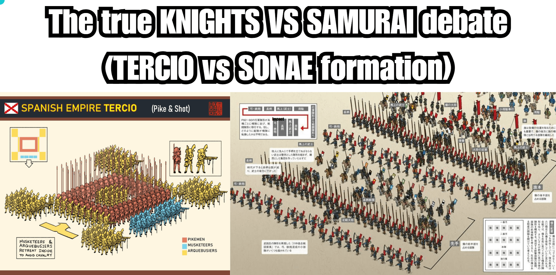 I think the thinner ranks of the ranged units in the Sonae formation could potentially offer more firepower than the Tercio. Being outgunned was eventually what made them obsolete. Then again I think a solid charge could plow right through the Japanese formation with the elite to veteran units that made up prime Tercios. A major factor would be the Sonae including cavalry units but honestly the Tercio is set up so consciously to counter cavalry they’d struggle to make an impact, potentially throwing their lives away early and weakening the unit for the decisive confrontation.