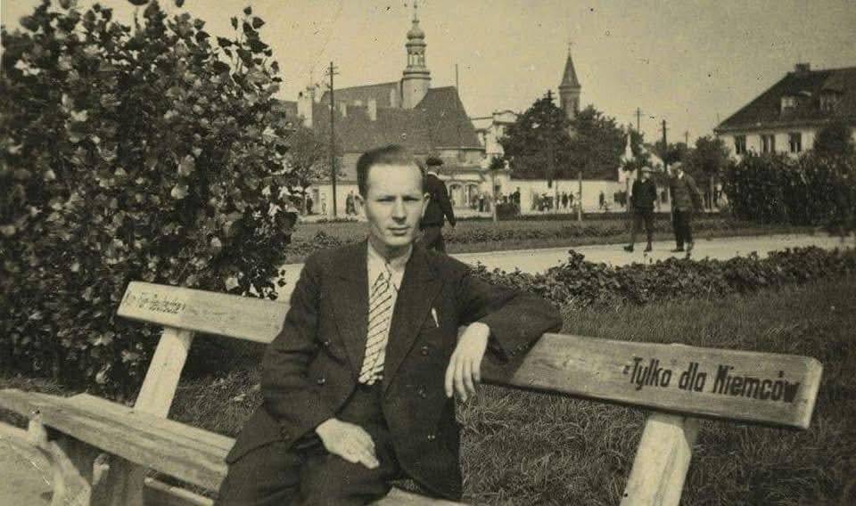 Pole sitting on “Only for the Germans” bench in Włocławek, Poland, 1940. Photo by Janusz Paszyński. [960×568] by Snoo_90160