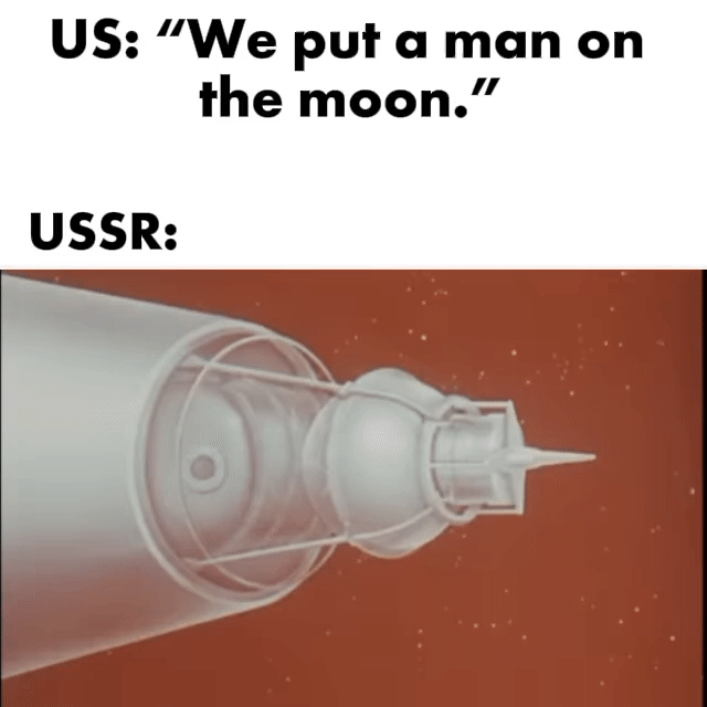 USSR: We sent the first satellite into space, we sent the first man into space, we sent the first woman into space, we performed the first spacewalk