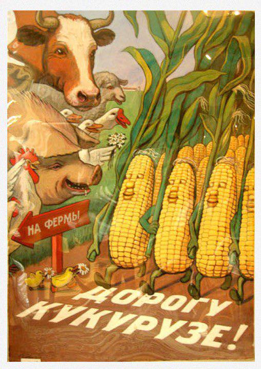 Soviet poster captioned ‘Make way for corn! from Khrushchev era 1960s [508 × 720] by Suspicious-Slip248