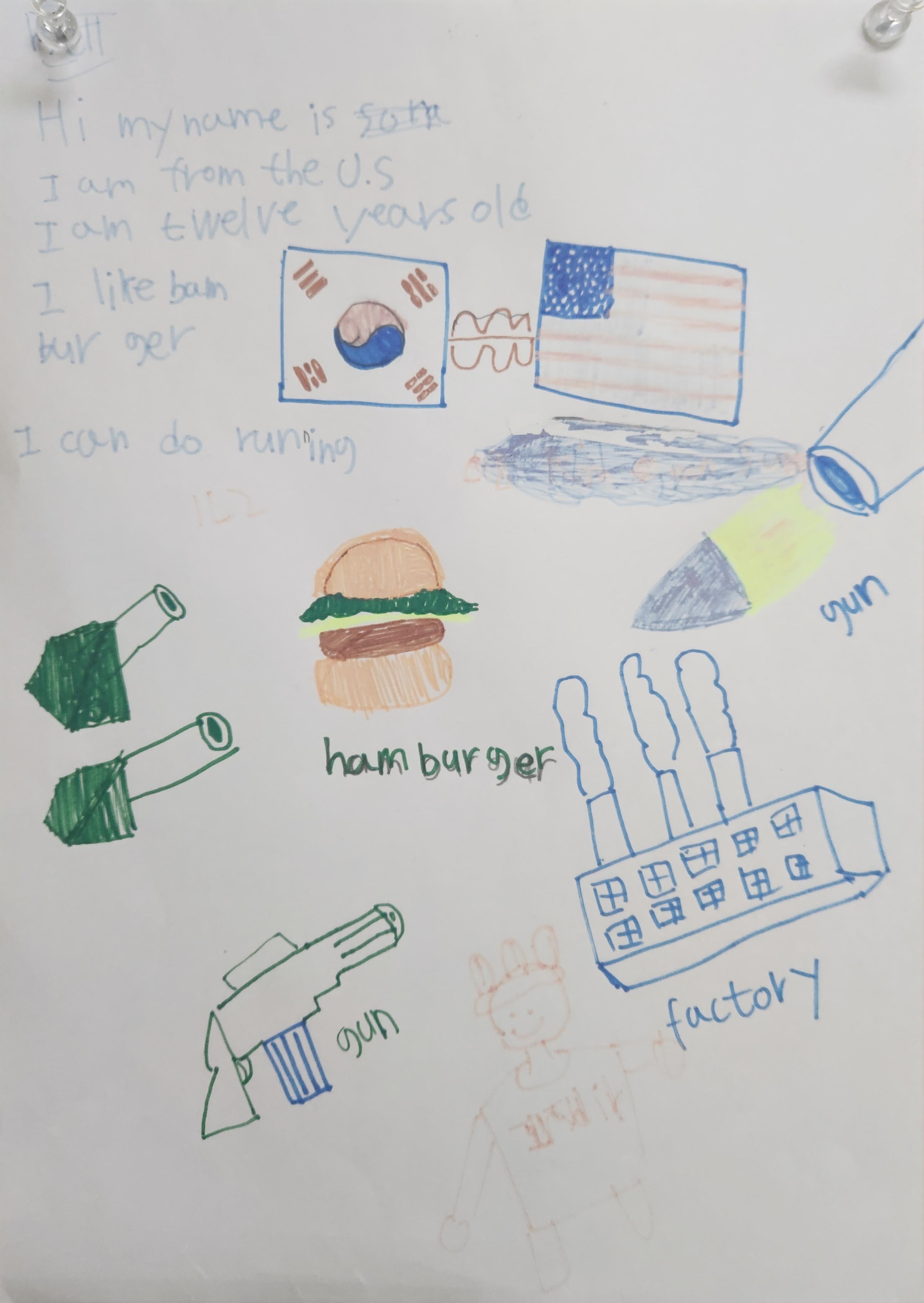 Drawing a South Korean elementary school student made, pretending to be from the USA.