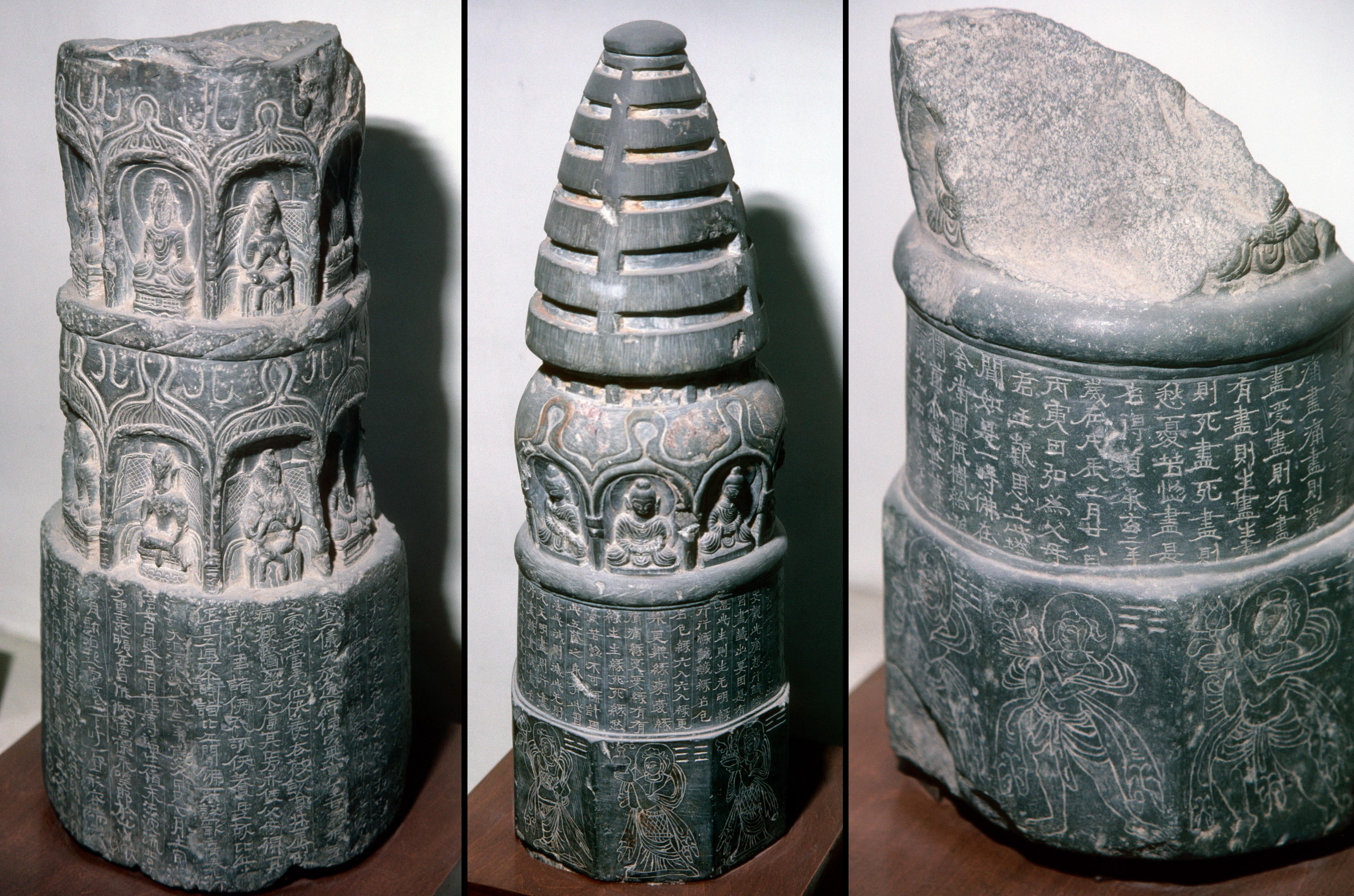 Stone stupas with engraved incantations. China, Northern Liang dynasty, 426-436 AD [4530×3000] by MunakataSennin