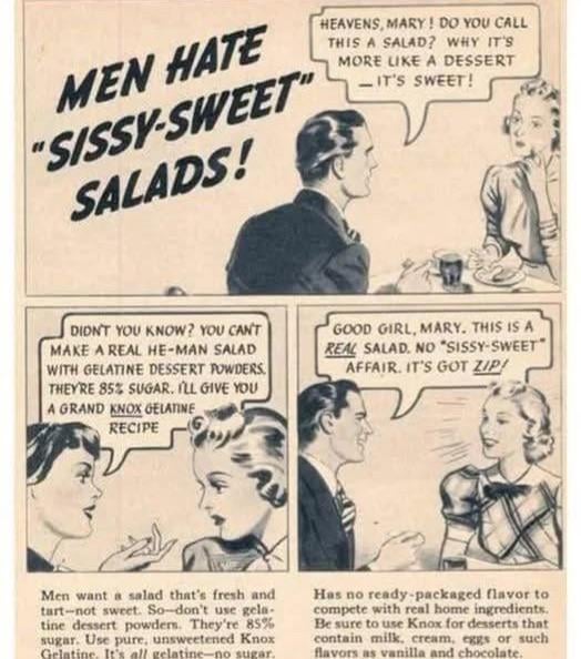 Wow, I just realized it was the fruity jello salads I ate as a kid that made me gay. If only my mom had used Knox gelatin, I might be into women now.