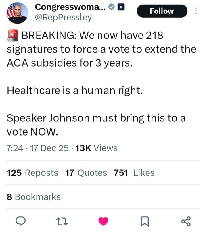 They’ll still expire. These are purple state Republicans; this is just performative. Earliest vote could be Dec 30 and they expire Dec 31 (and they’ll be on break after the end of this week). Then still has to get though Senate who said they won’t do anything without explicit anti-abortion stuff. Then Trump can still veto it.