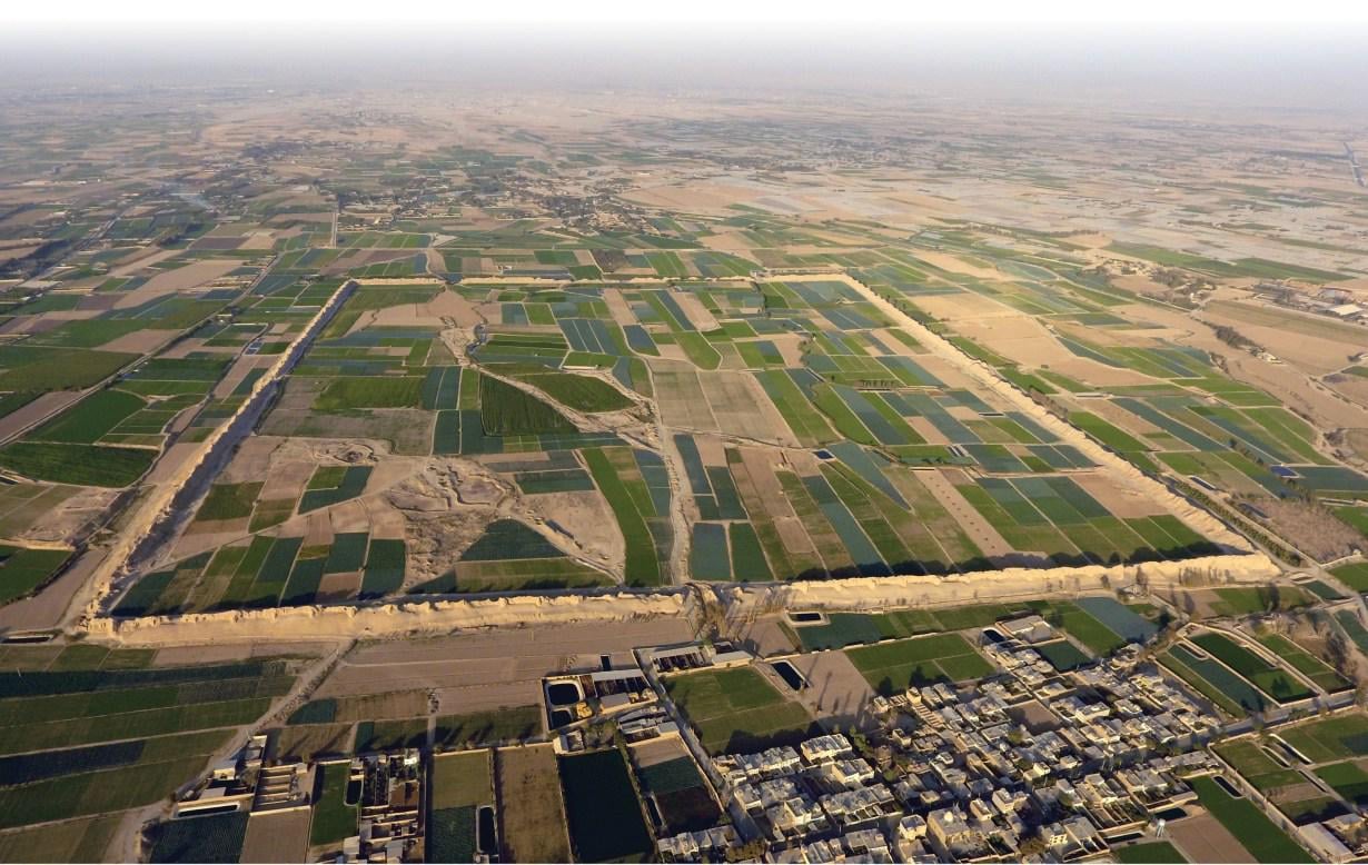 An aerial view of Iraj Castle, a Sasanian fortification built in the 4th-5th century CE in Iran. The monument is known for its peculiar design: large defensive walls with embedded rooms and arches, with towers at regular intervals, enclosing a vast empty interior of 190 hectares [1230×778]