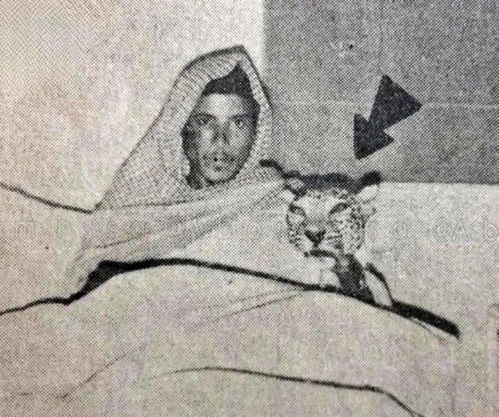 A Saudi shepherd, Saeed Alanzi, fought a leopard that attacked a ewe in his flock. He then went to the hospital with the leopard’s severed head as evidence of the source of his injuries, 1975 [700×584]