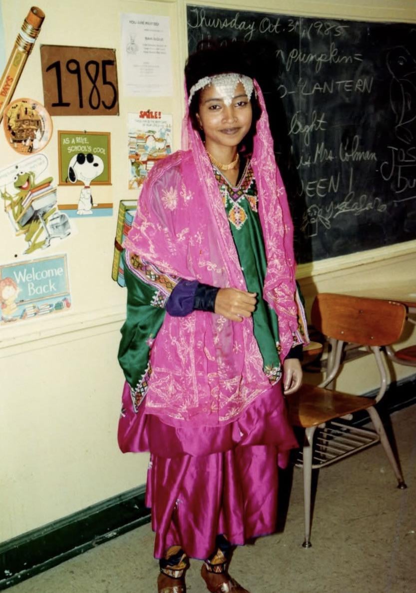 Dorsey High school student strikes a pose in Los Angeles, Board says October 31, 1985 by Darknightster