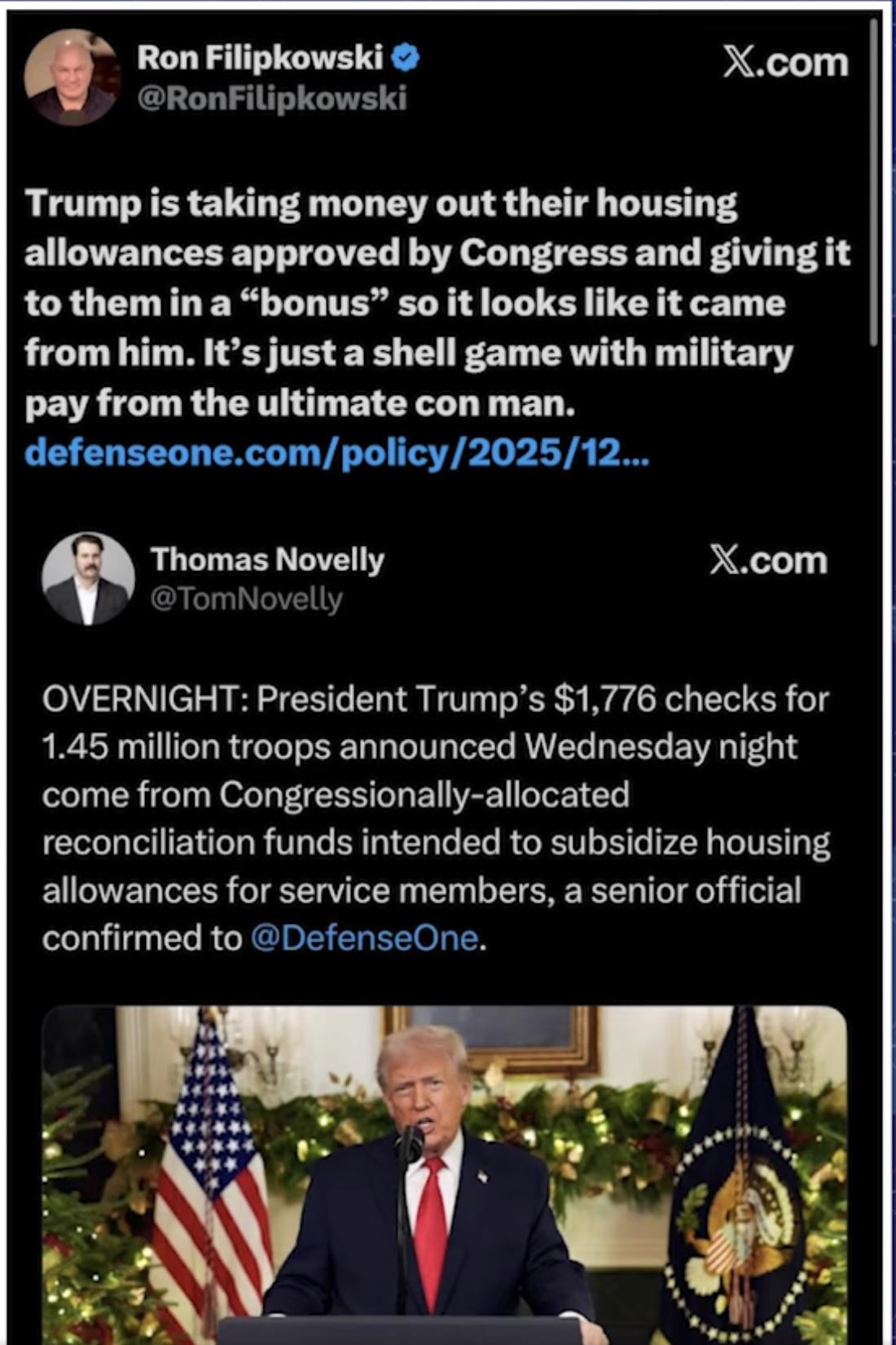 Housing money is a tax-free stipend. The repackaged money is a bonus that’s taxable income. So, Trump will effectively taking a portion back. Very much on brand.