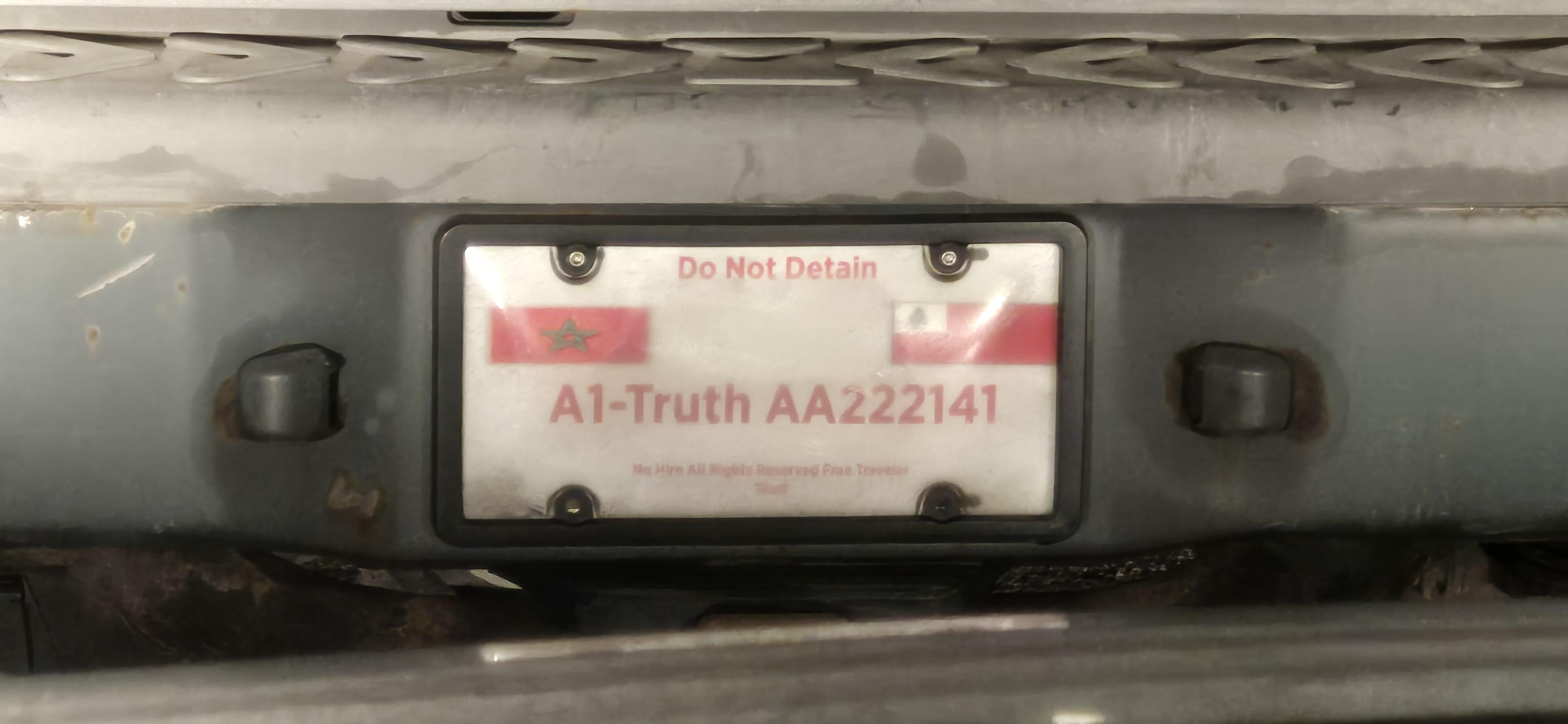 The “Do Not Detain” is sheer genius! It prohibits the cops from pulling him over. It’s better than a get out of jail free card because they can’t even put him in jail.