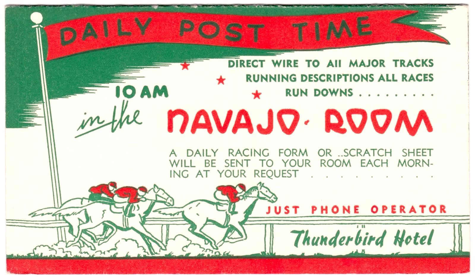 The Thunderbird Hotel, Las Vegas, NV, opened in 1948. This race card dated from the late 40s-early 50s. by Character-Witness-27